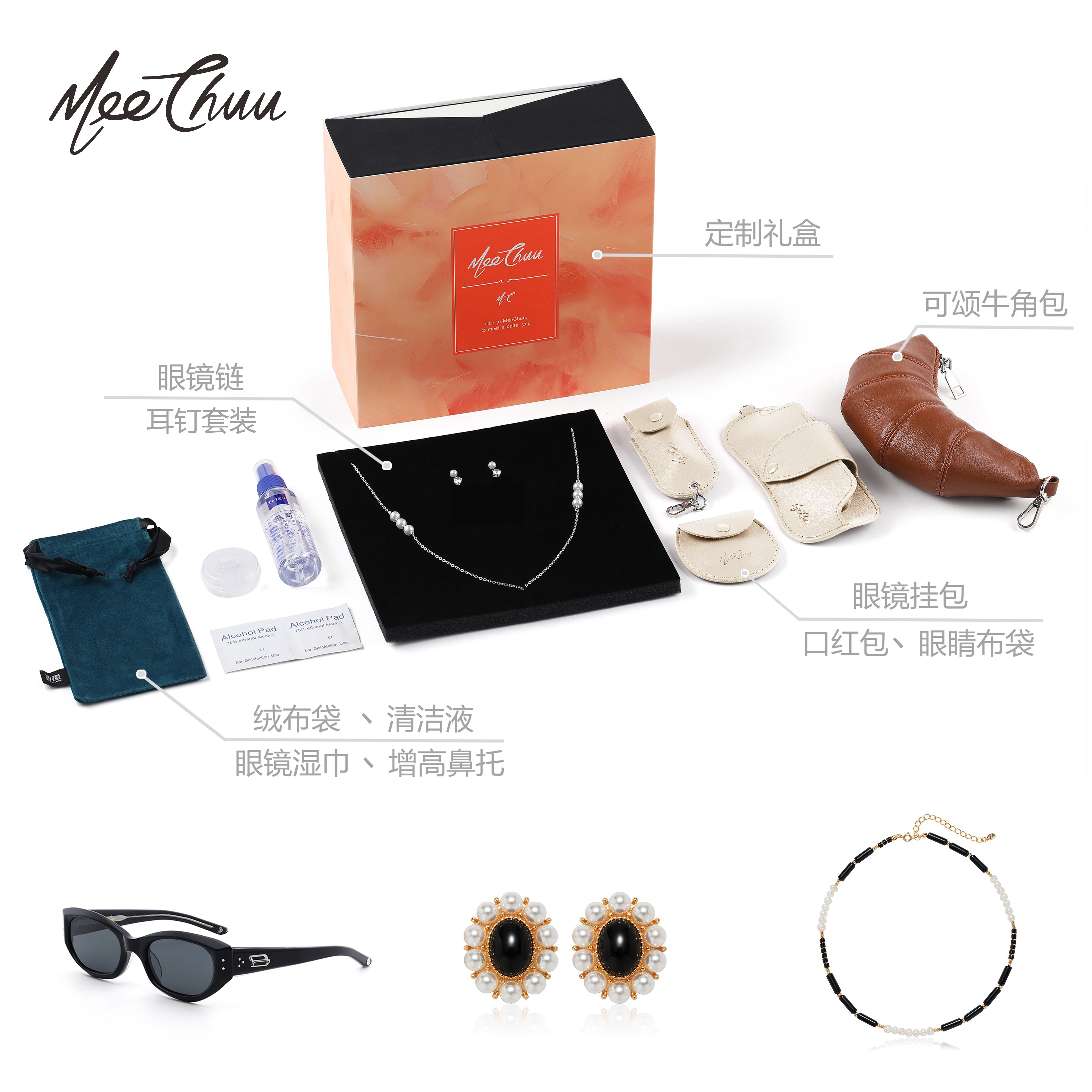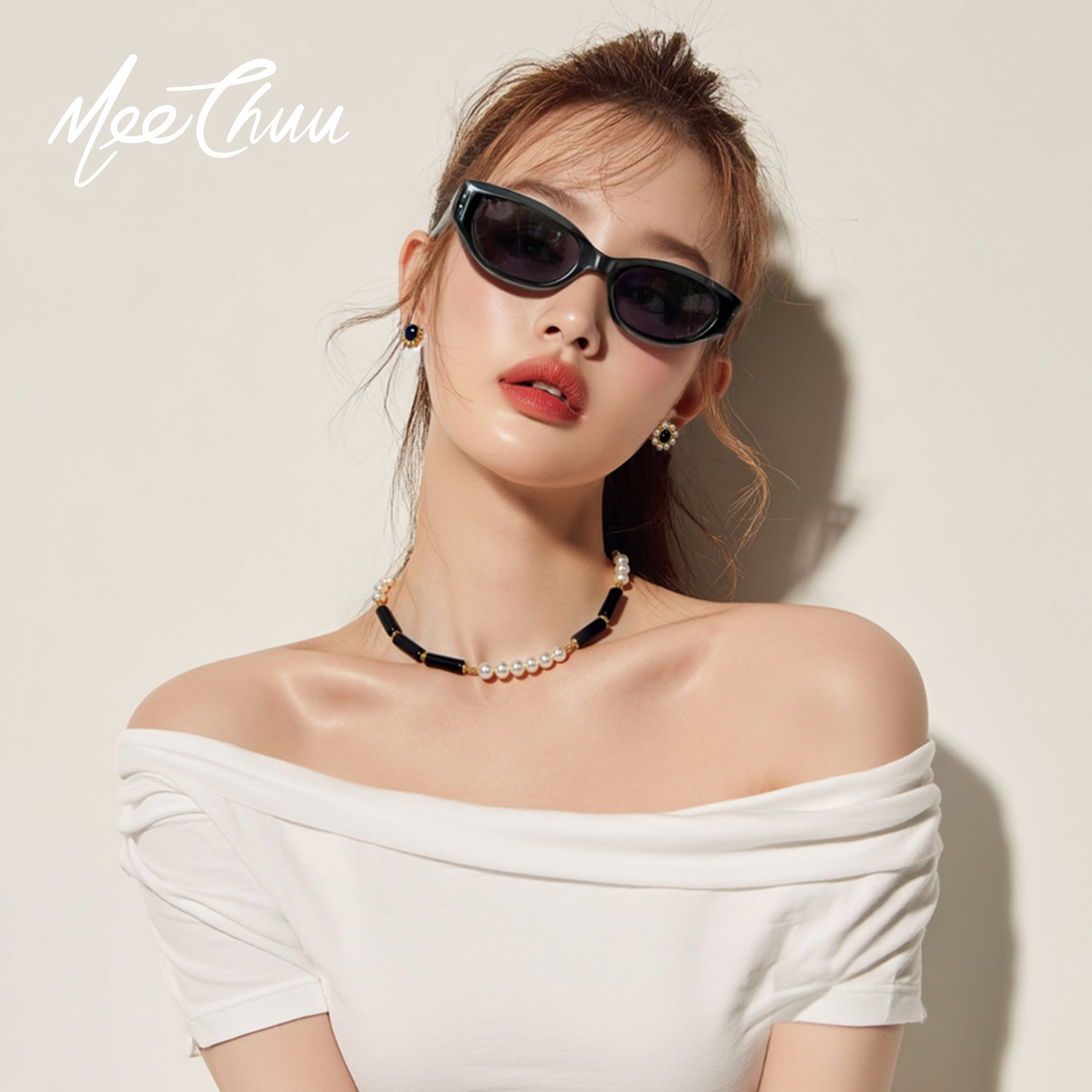 【墨镜项链耳钉套装】MeeChuu天然玛瑙石珍珠女小众高级感锁骨链