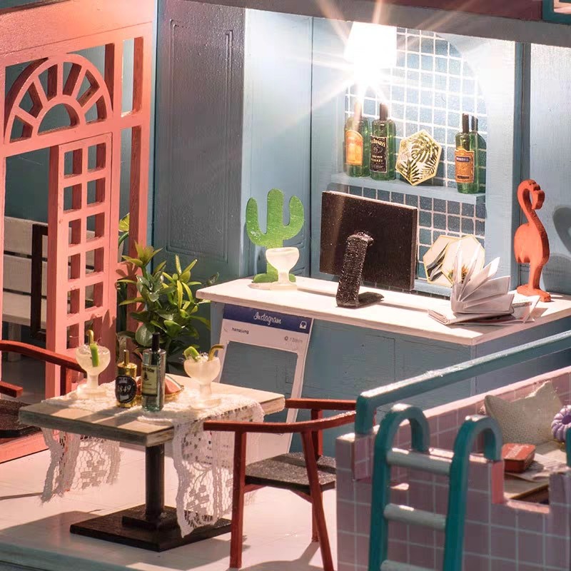 趣益雅diy小屋粉系咖啡馆手工创意别墅建筑模型拼装玩具女生礼物