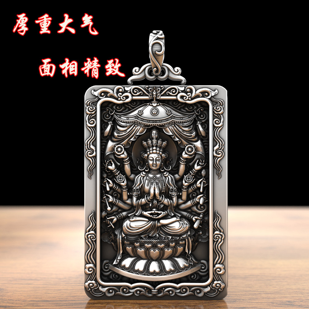 纯银s999虚空藏本命佛吊坠十二生肖足银实心守护神项链男士女复古