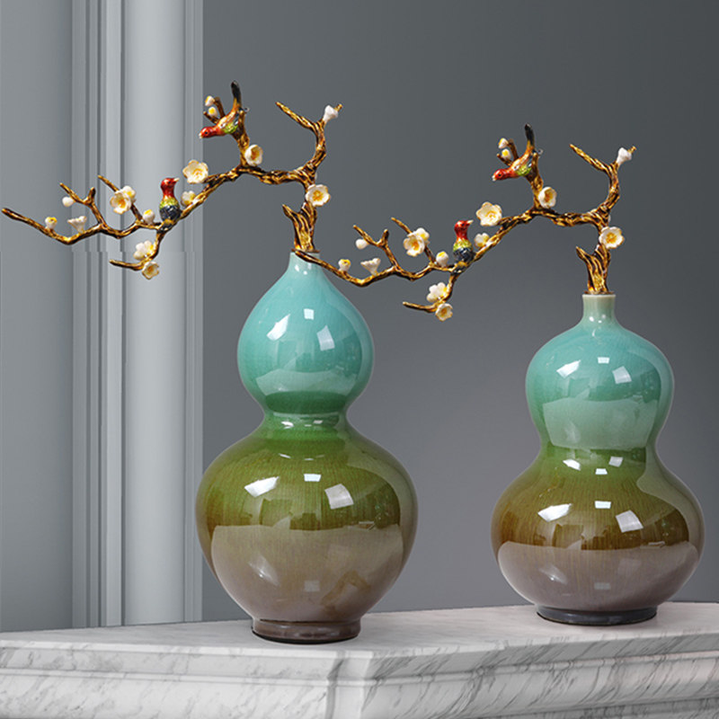 珐琅彩瓷器陶瓷摆件客厅卧室葫芦摆件床头电视柜手绘工艺品装饰品