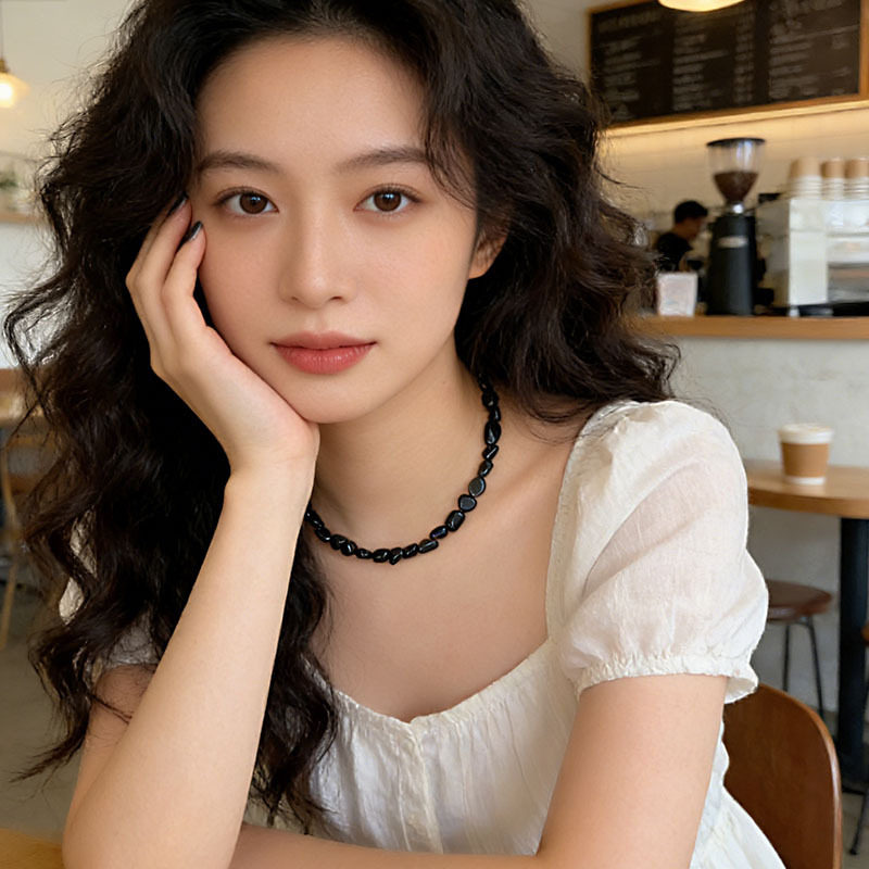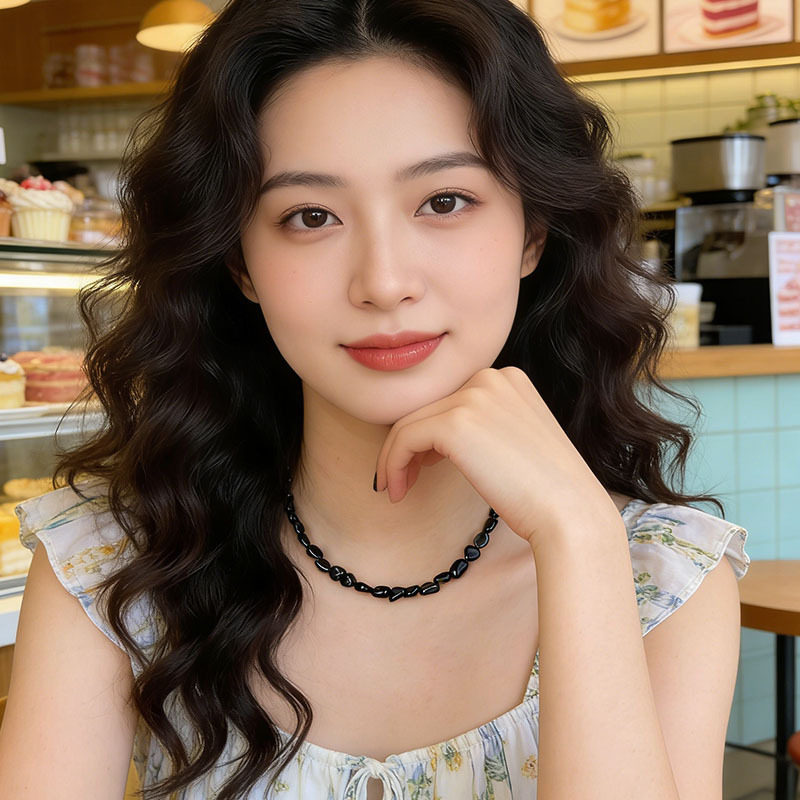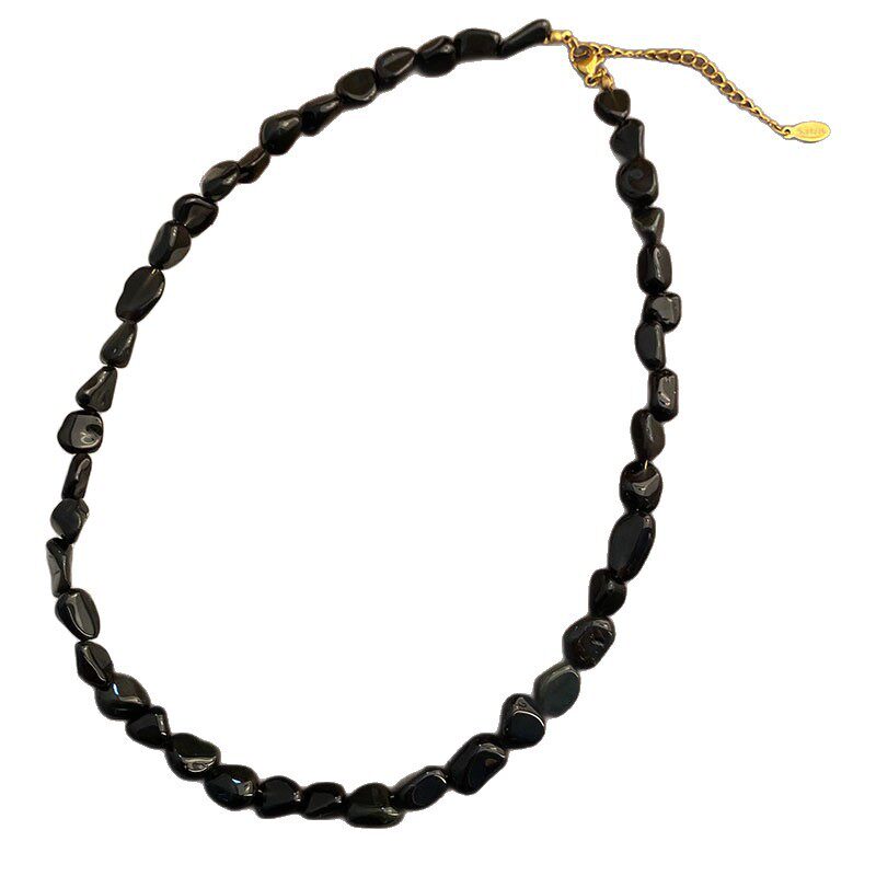 手作款黑色天然石手串个性小众不规则天然石高级感手链原创手饰品