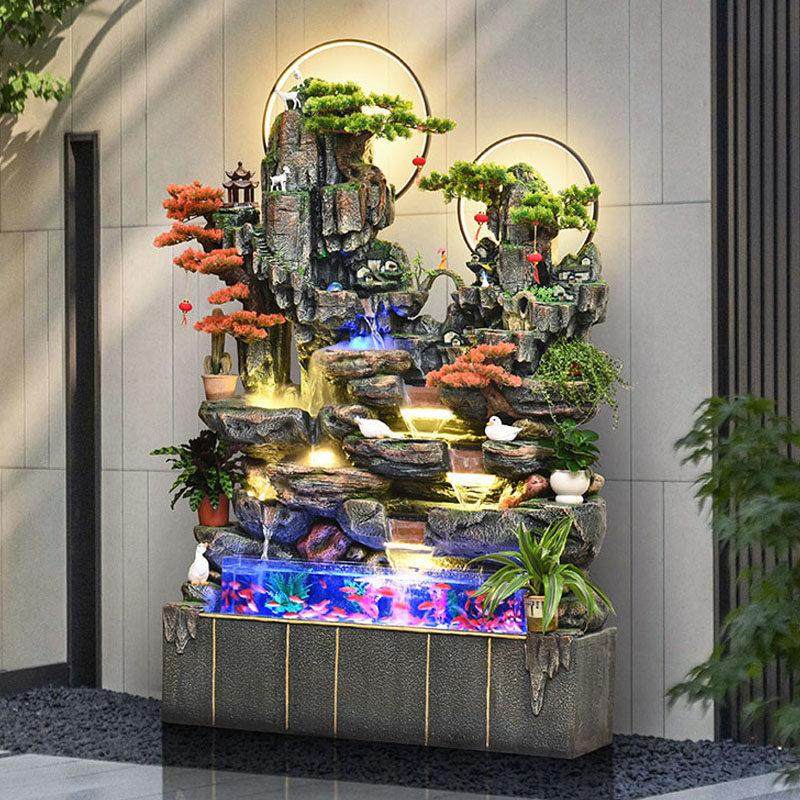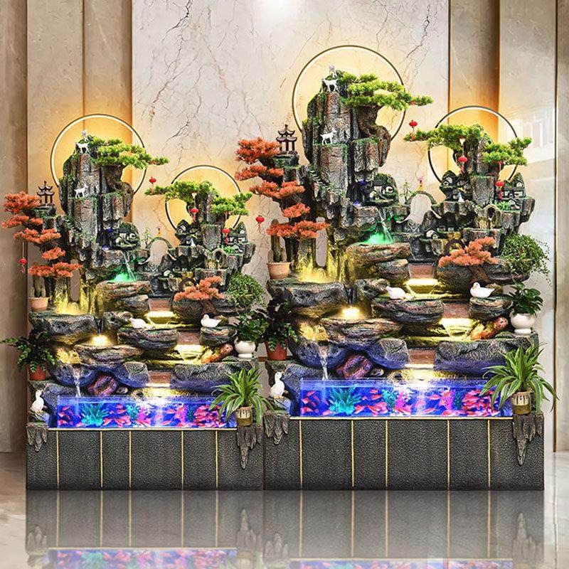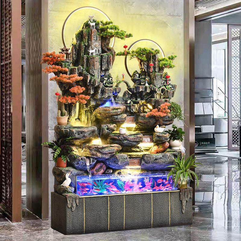 大型假山流水喷泉落地鱼缸客厅玄关风水轮高山风车循环水开 业摆