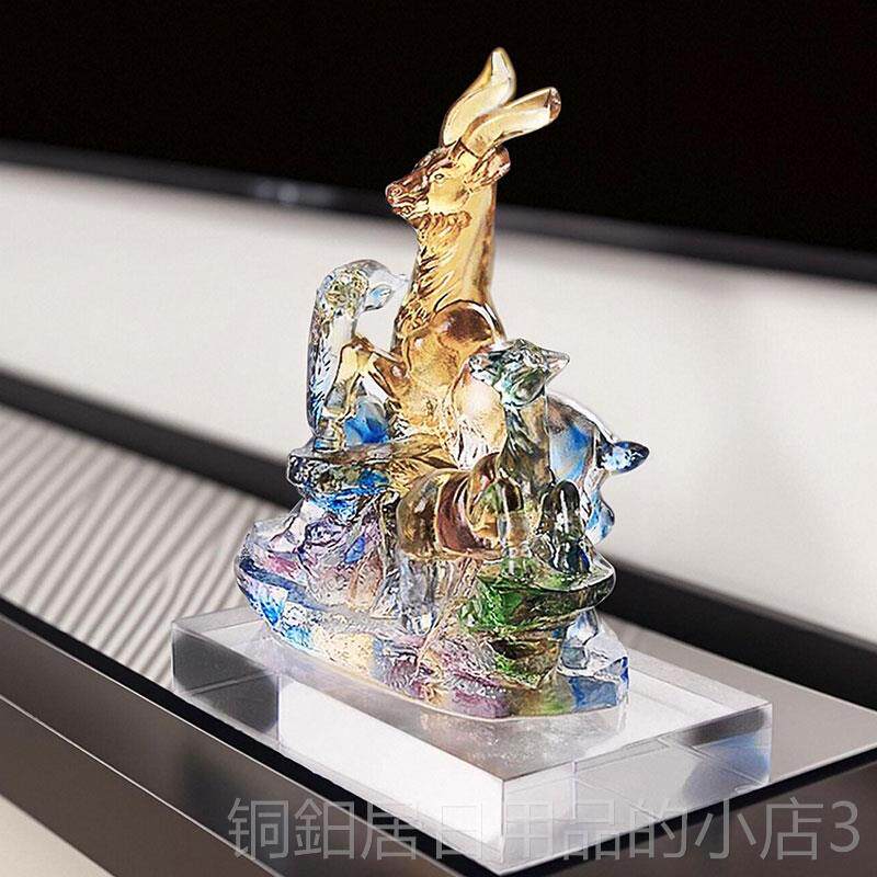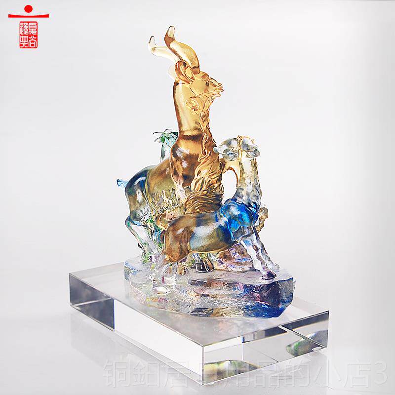 高档琉璃羊摆件客厅三羊阳开泰办公室桌面工艺品纪品水礼晶物念三