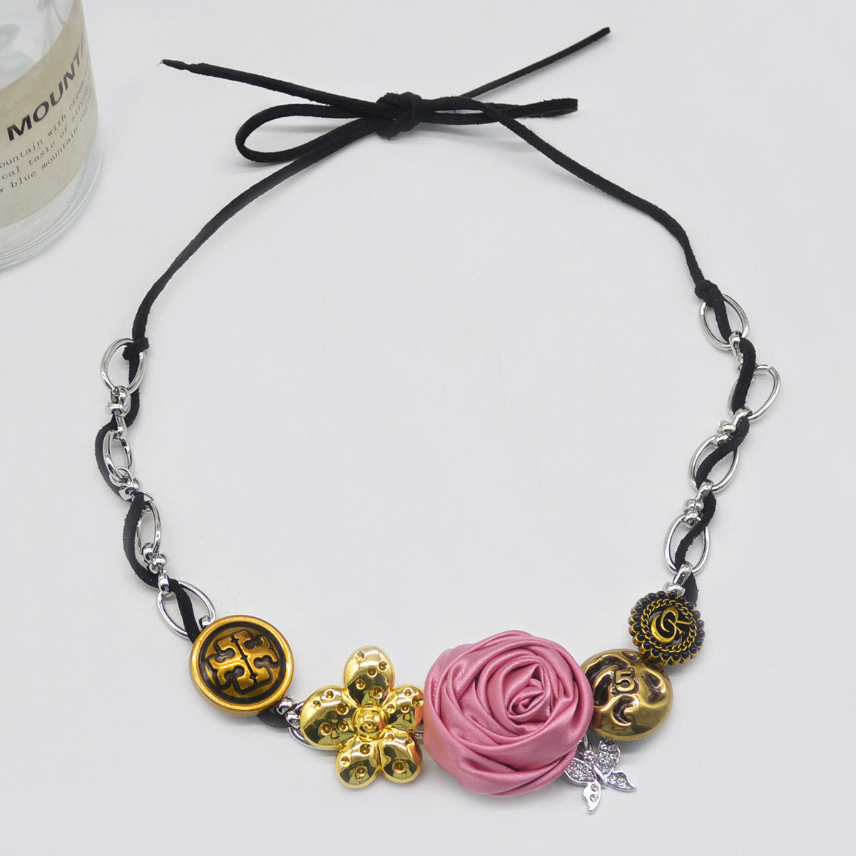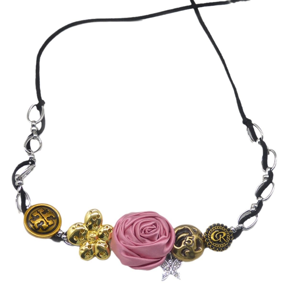 甜酷辣妹金属纽扣布艺花朵项链女时尚轻奢choker氛围感锁骨链颈链