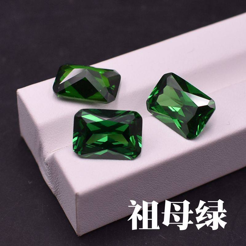 祖母绿裸石戒面宝石长方形绿锆石DIY戒指吊坠配石绿色宝石未镶嵌