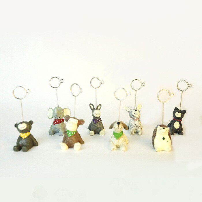 新款直销创意卡通树脂动物摆件办公桌面名片夹便签夹留言夹照片相