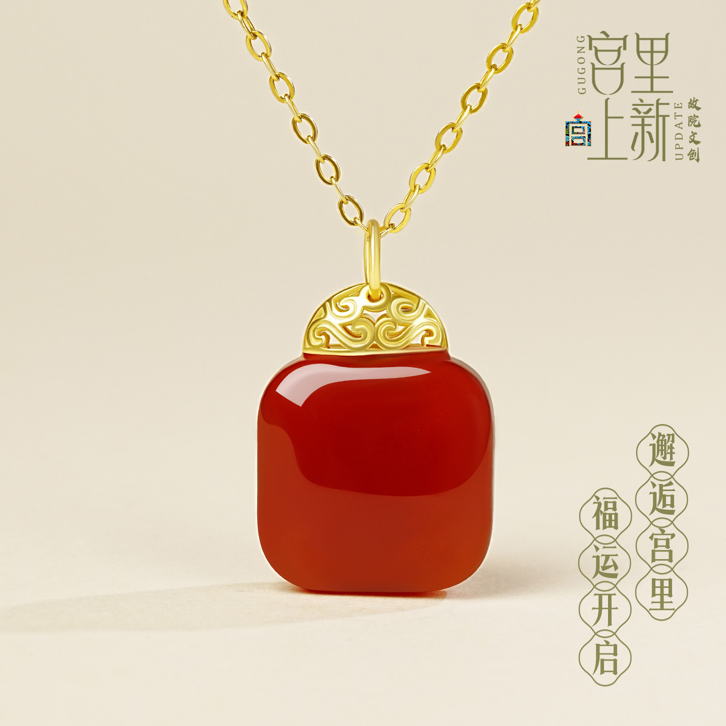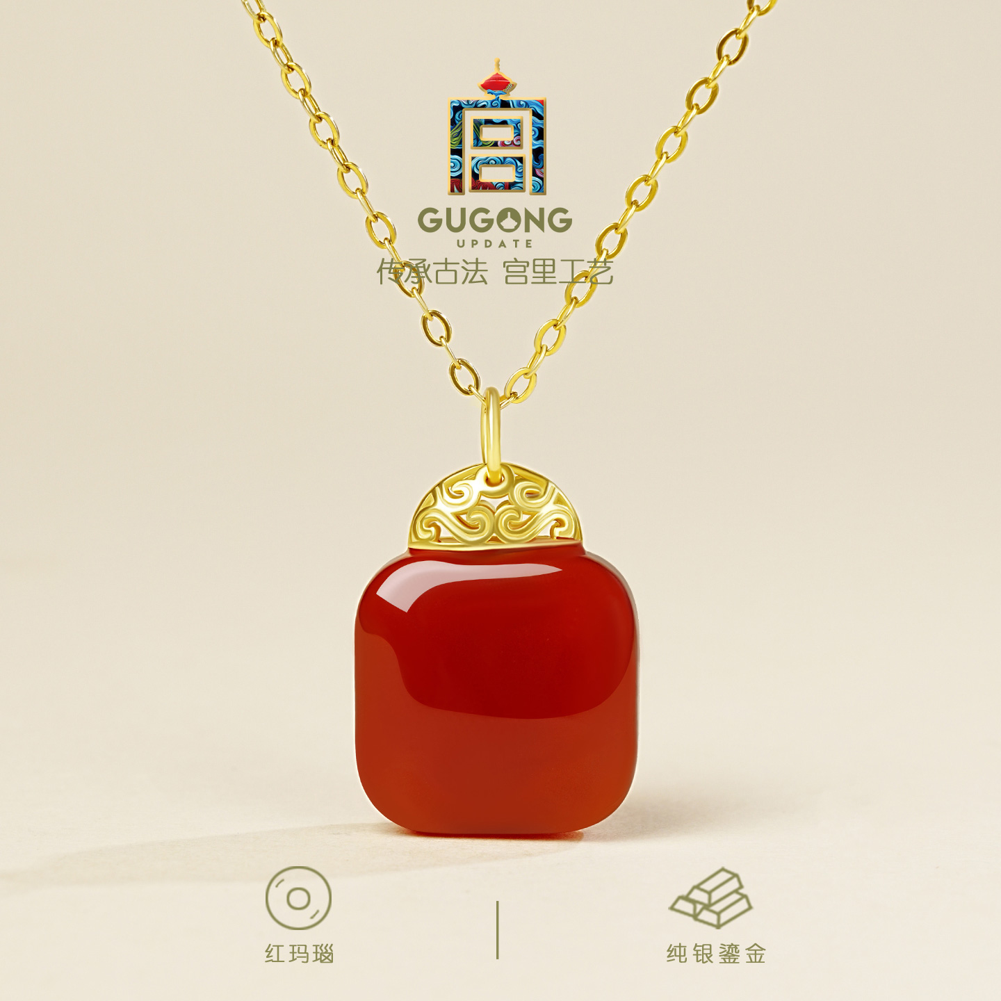【本命年礼物】宫里上新红玛瑙吊坠女纯银小方糖项链红色生日妈妈