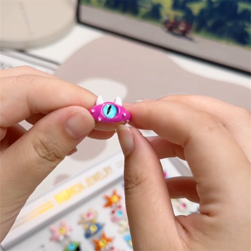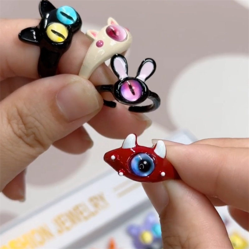 可爱小怪兽戒指金属小众设计卡通开口独眼怪兽童趣鬼马闺蜜指环