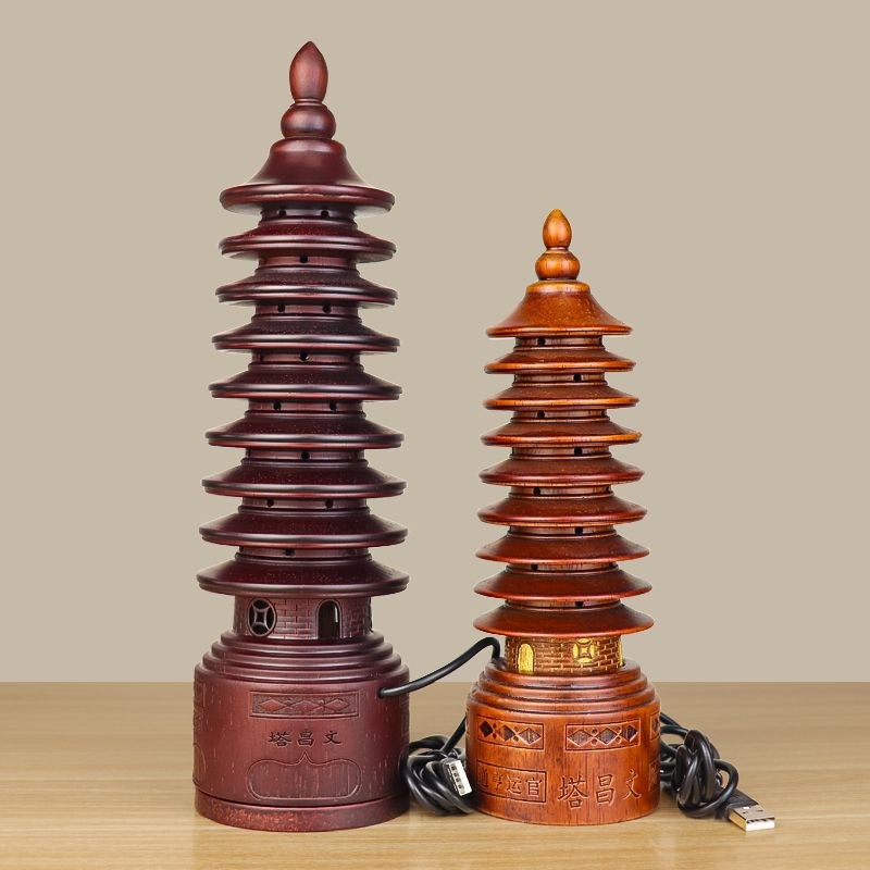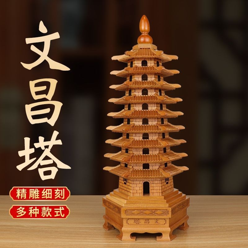桃木文昌塔开摆件九层木制六w边形过学生用书桌房光的办公室装饰