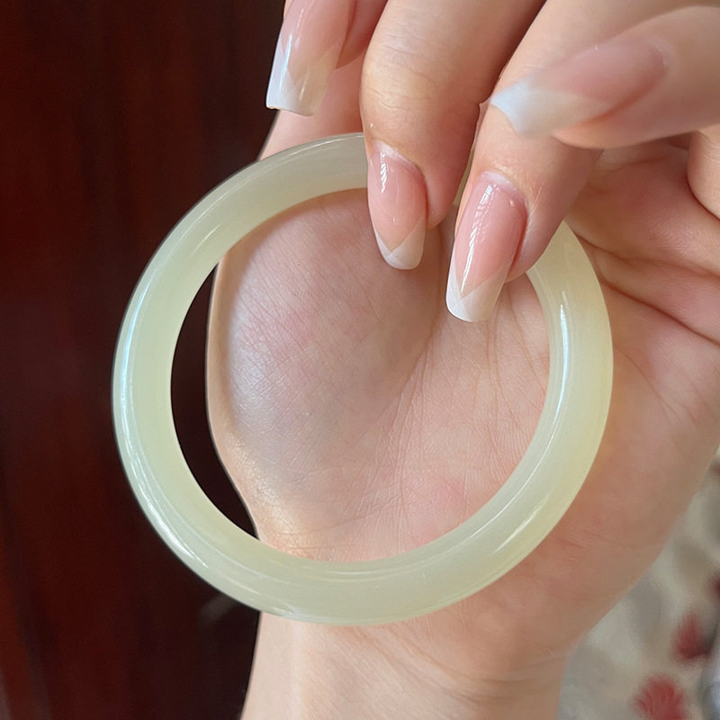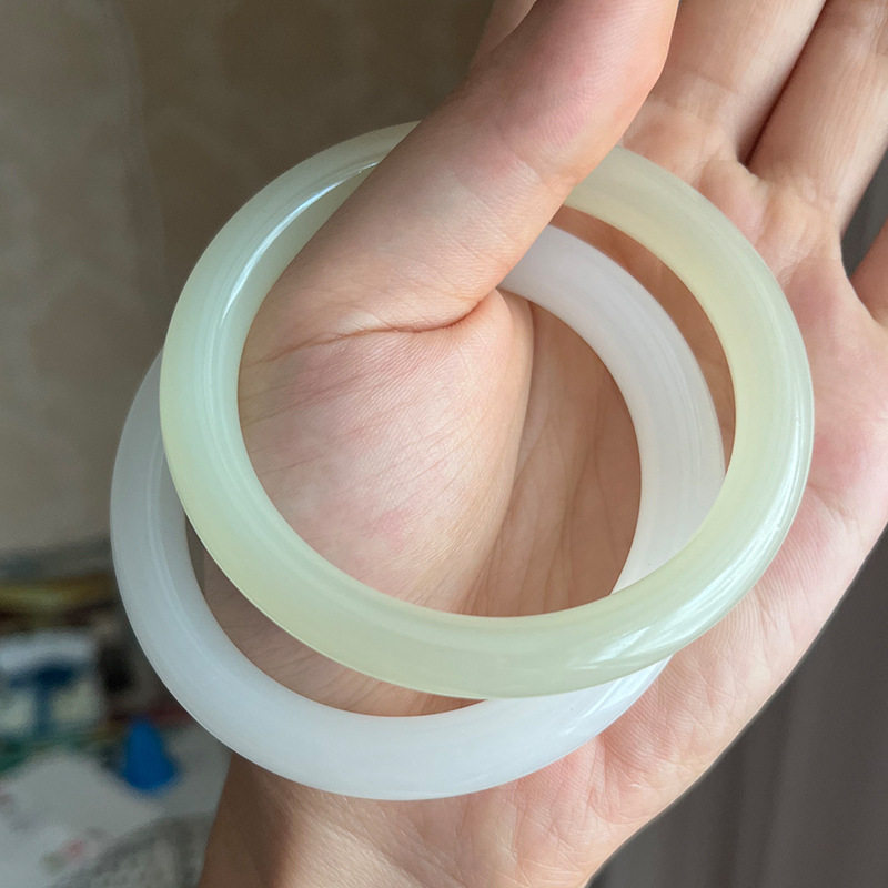 F阿富汗圆条手镯女玉石镯子和田青白色玉镯圆条羊脂白玉石手镯批