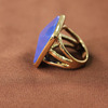 美式香蕉牌蓝色几何切割合成宝石金色复古气场个性夸张食指戒指