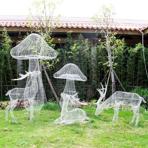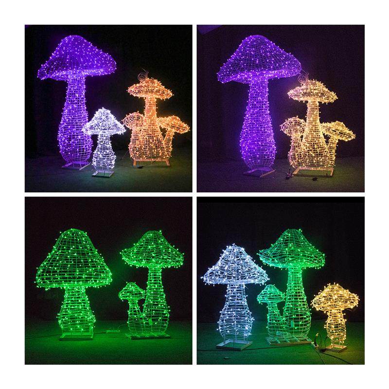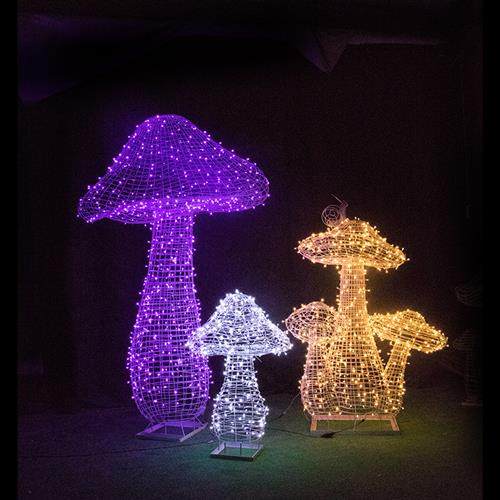 户外不锈钢铁艺镂空蘑菇雕塑仿真植物发光摆件公园林小区草坪装饰