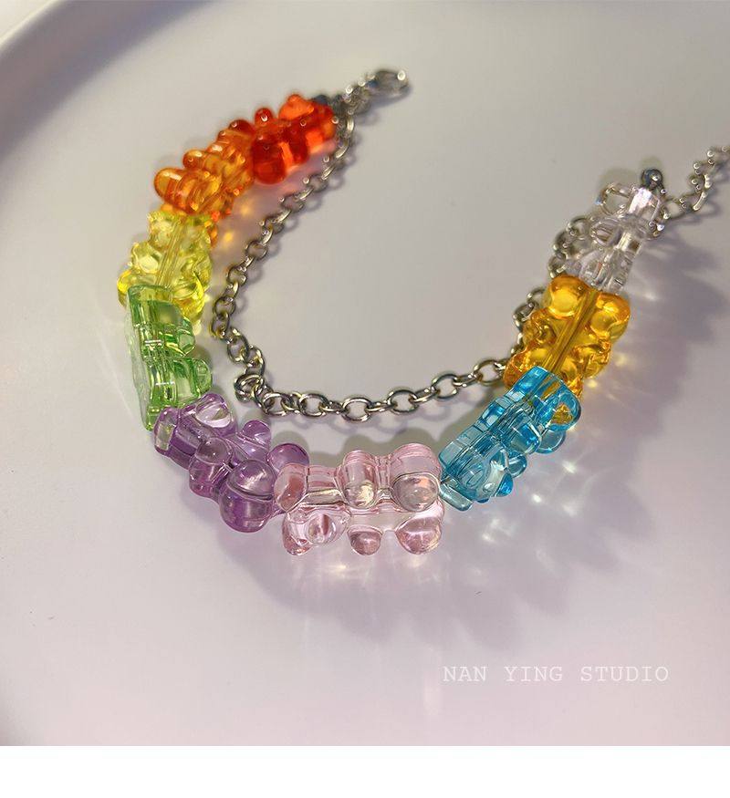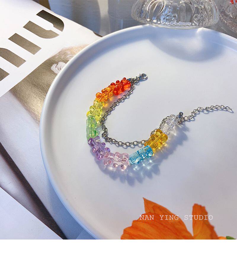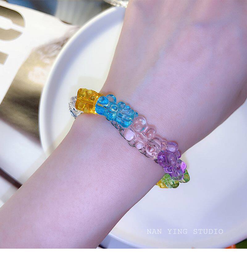 NANYING 夏日糖果色童趣可爱泰迪熊彩色小熊软糖手链手串学生饰品