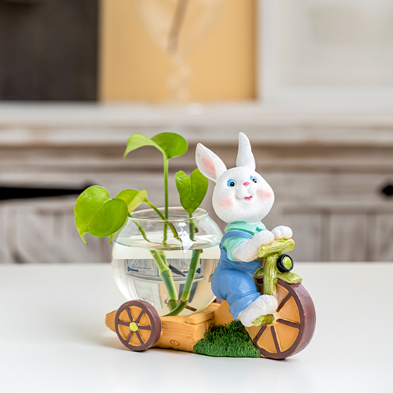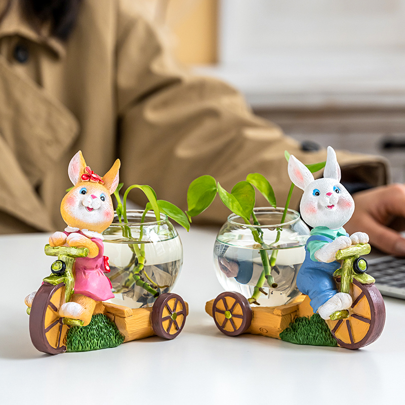 现代轻奢创意水培花瓶兔子摆件客厅插花北欧O玄关电视柜餐桌装饰