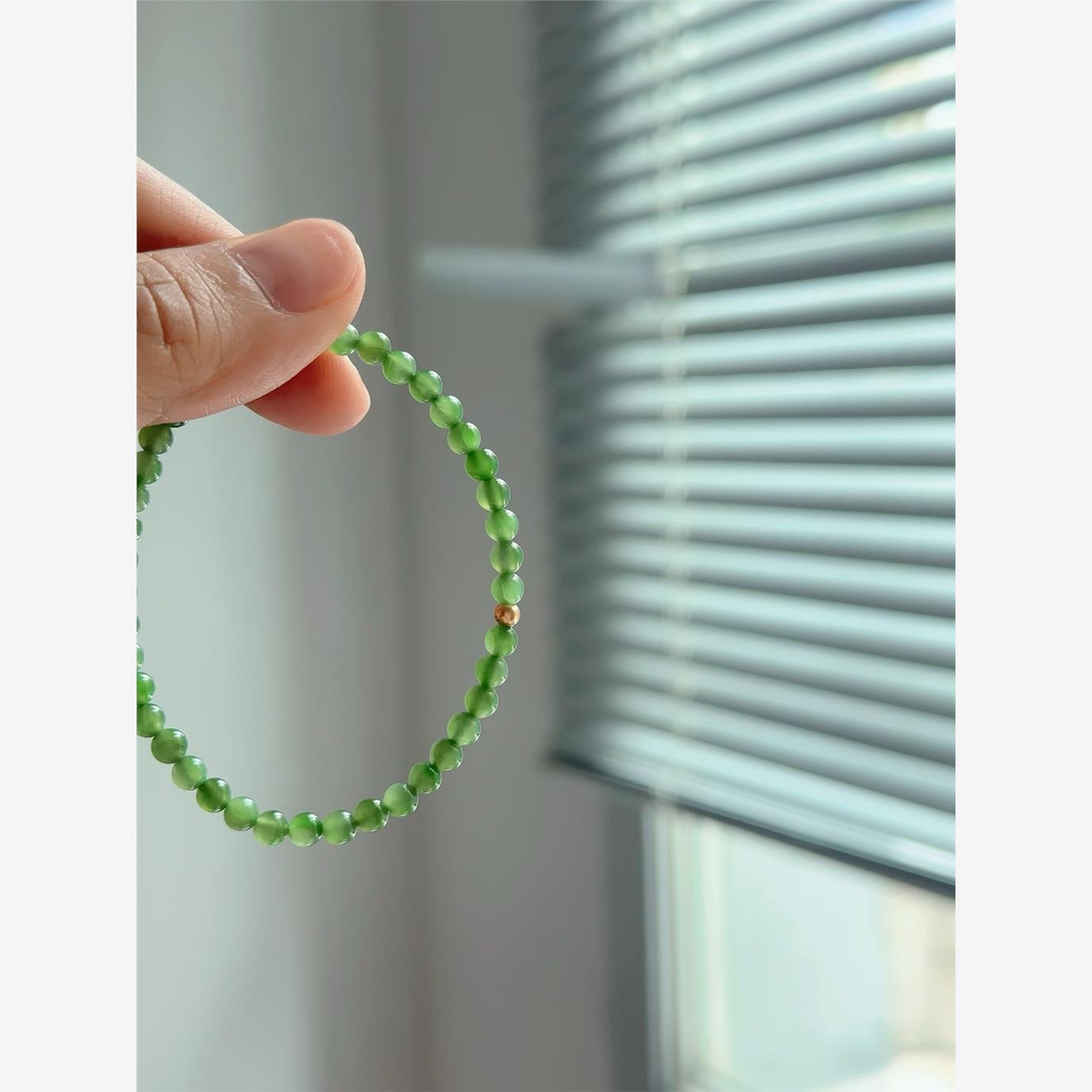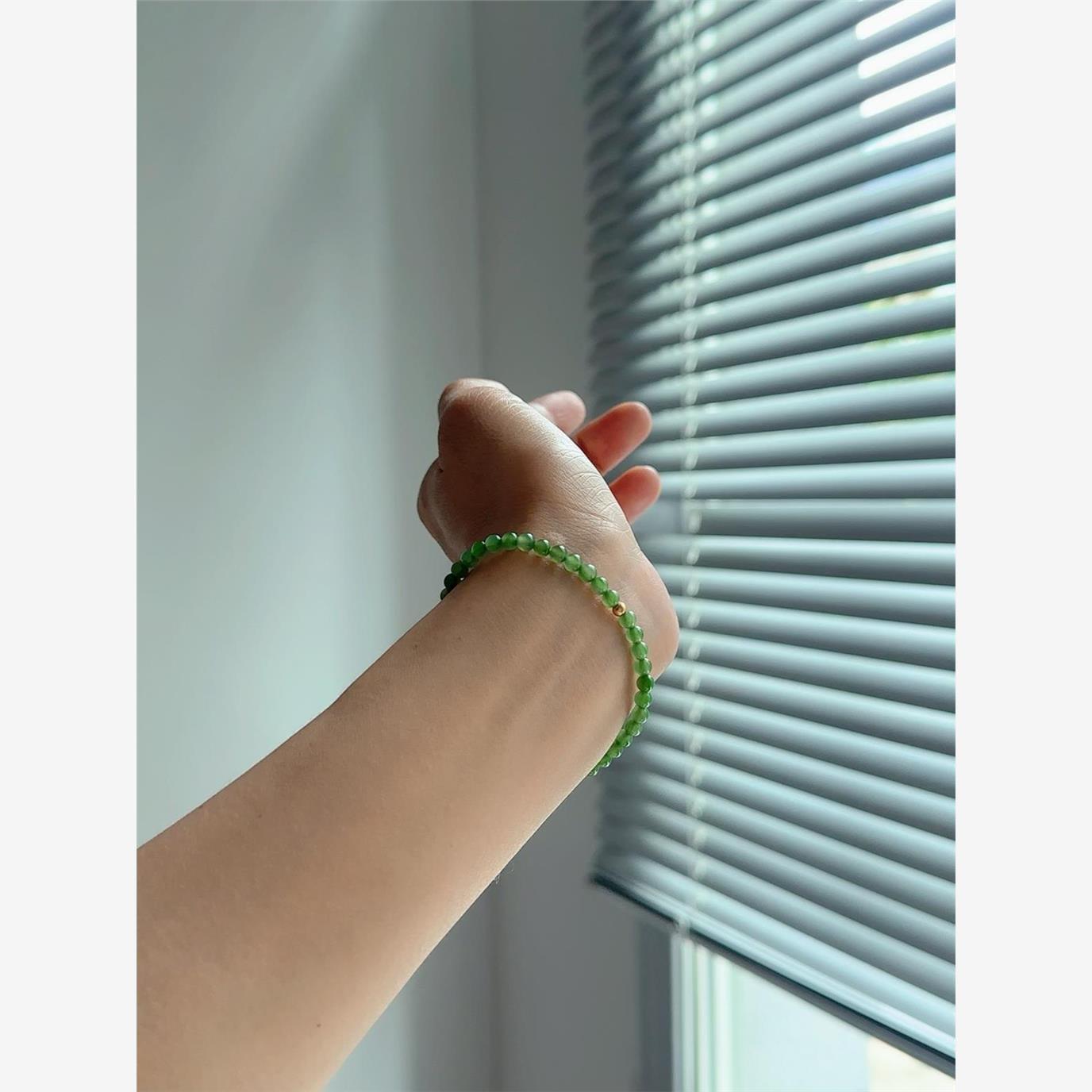 原创天然和田碧玉手串果绿小米珠玉石单圈菠菜绿轻奢小众串珠手饰