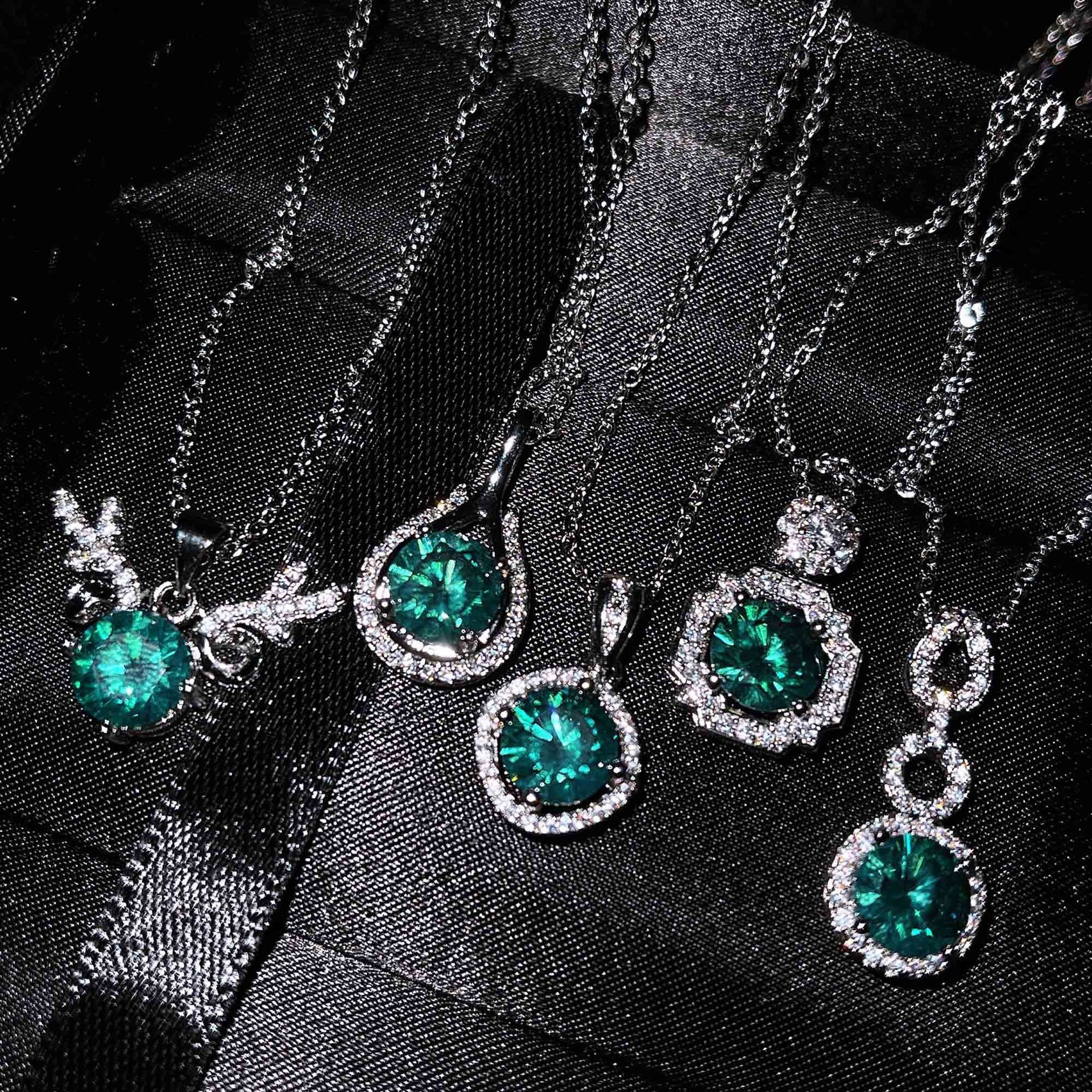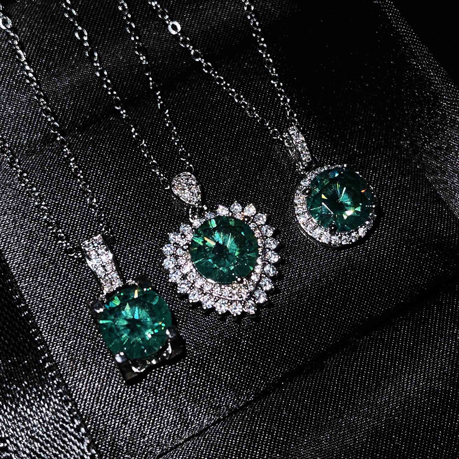 直播货源新款蓝绿色仿真莫桑钻克拉项链一鹿有你牛头心形吊坠