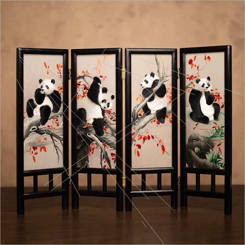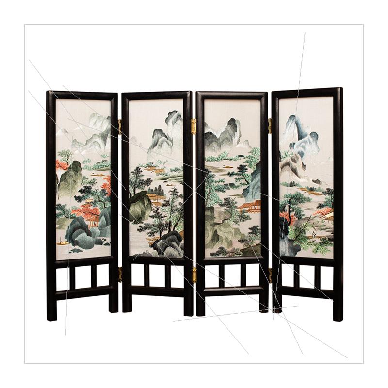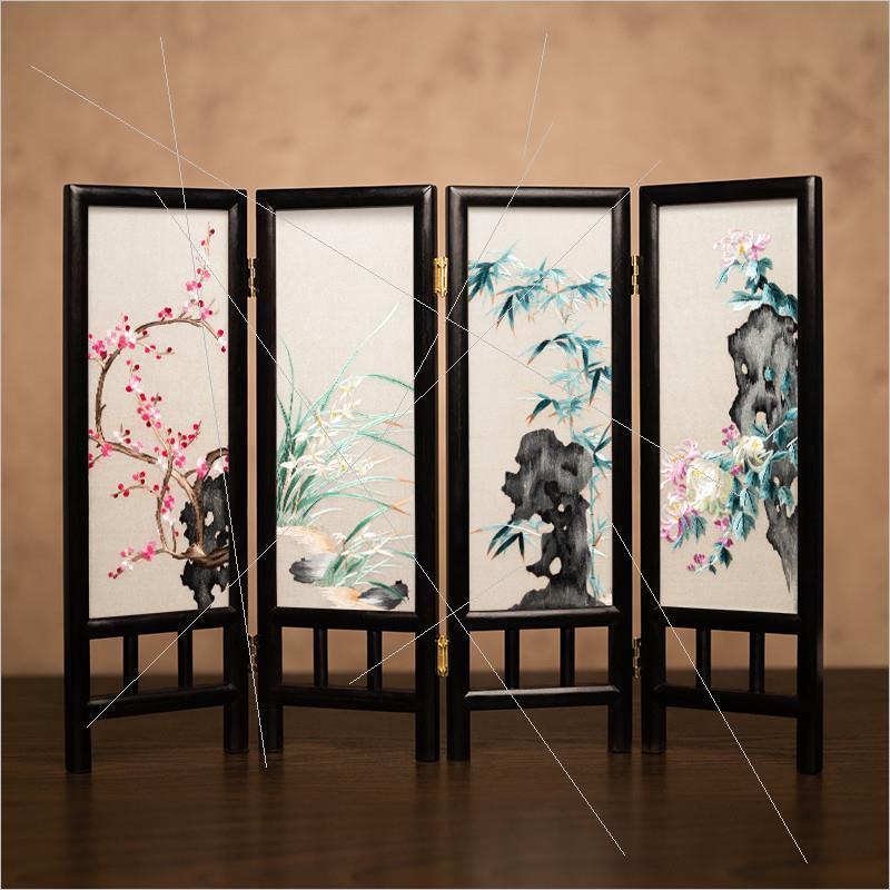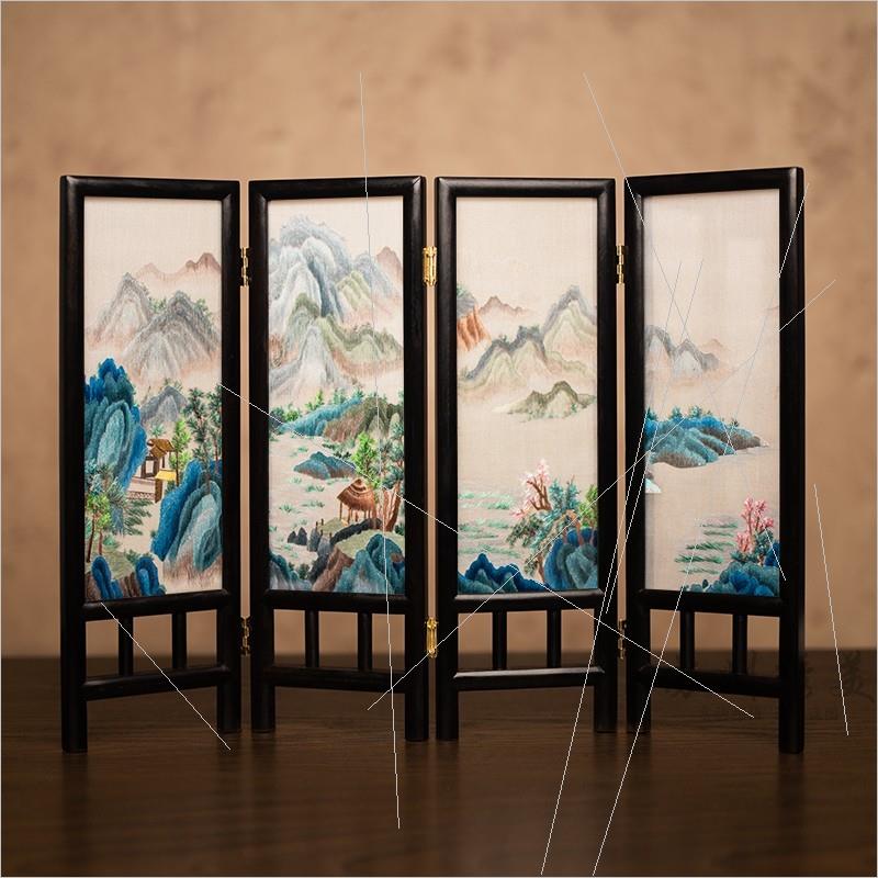 苏绣摆件中式客厅桌面装饰屏风手工刺绣双面绣四条屏国风工艺礼品