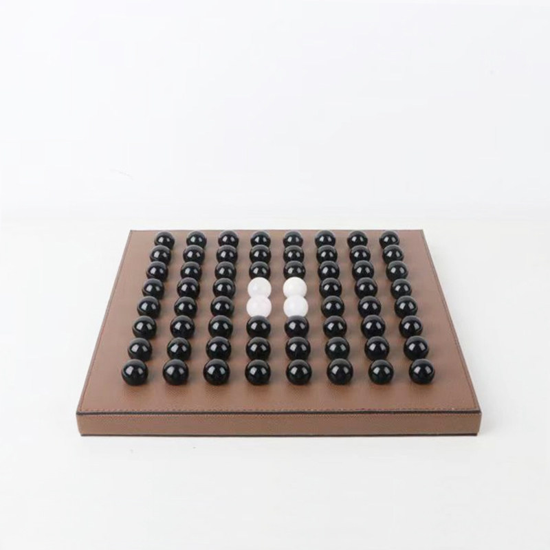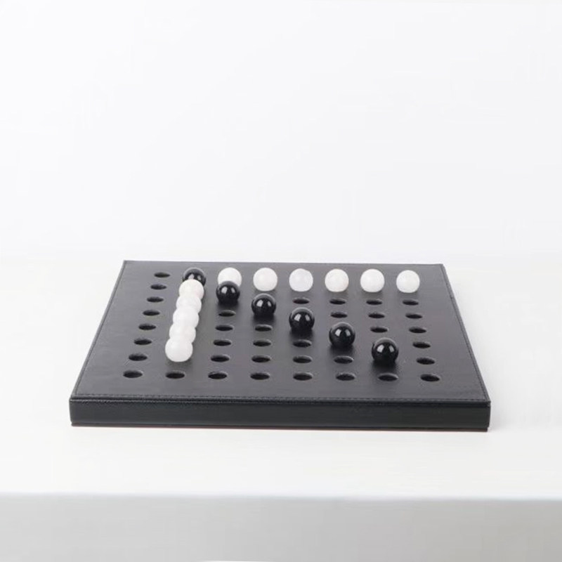 现代简约样板间售楼处皮质榉木棋盘艺术创意饰品书房客厅软装摆件
