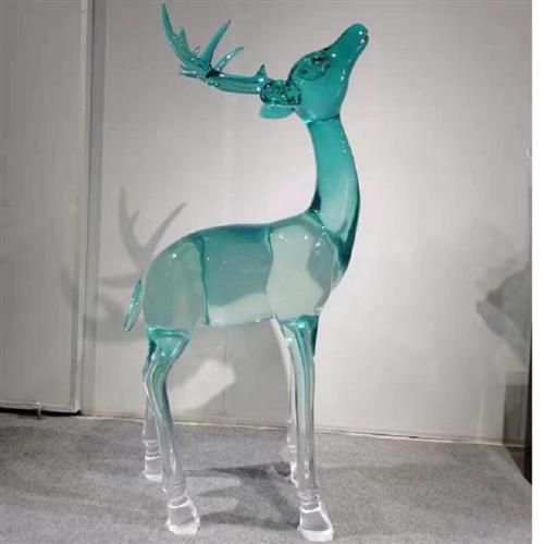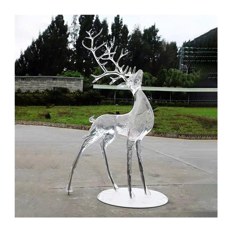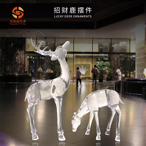 新中式酒店会所大堂家居玄关透明树脂大型雕塑麋鹿公园草坪摆件