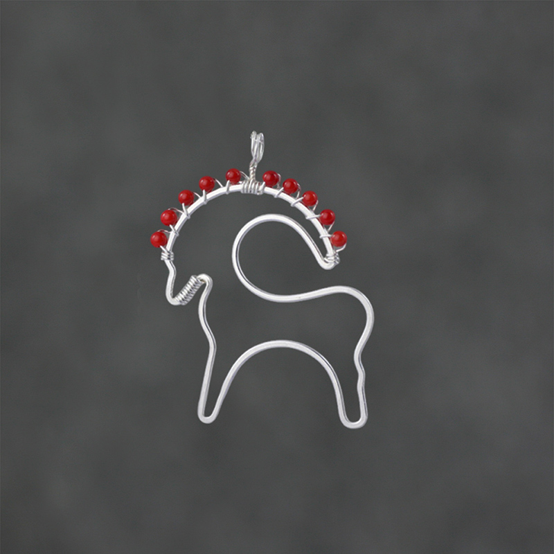 素元 羊年吊坠 纯银项链女短款颈链锁骨链本命年红色项链订制礼物