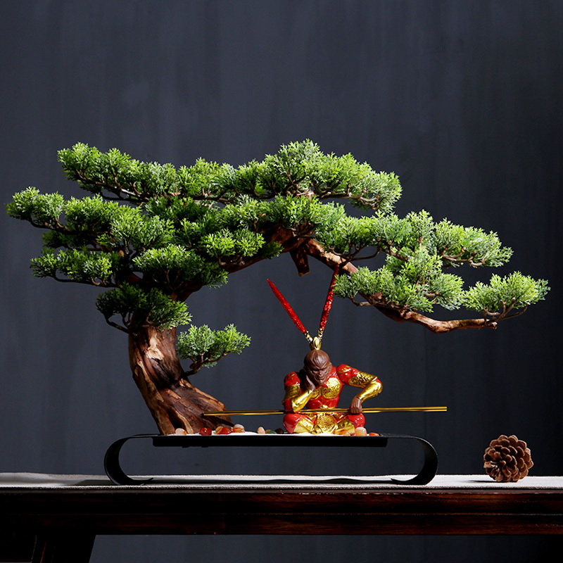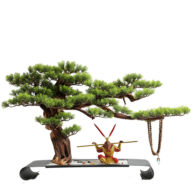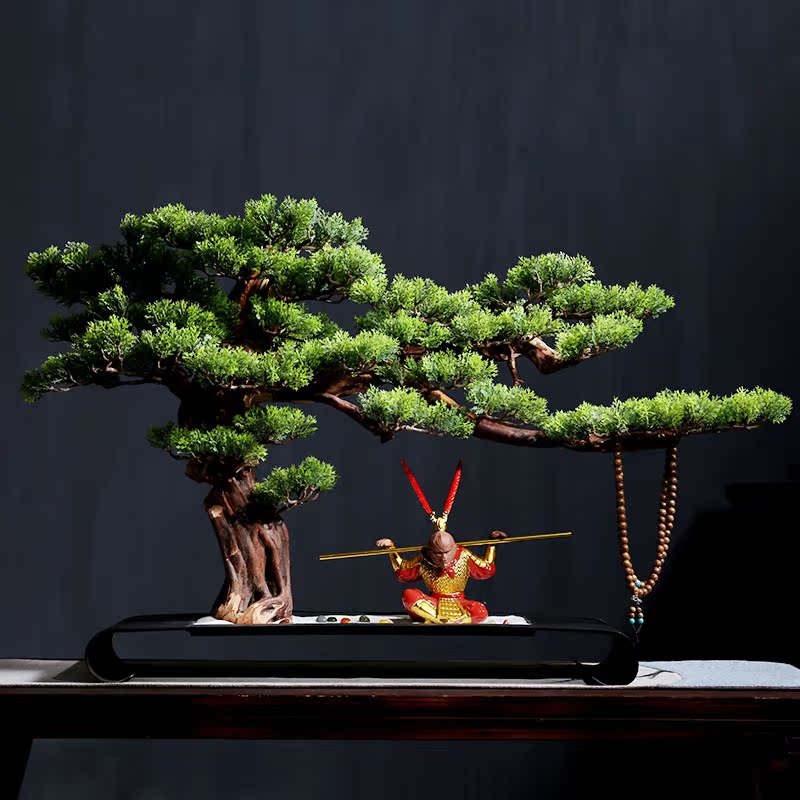 大型仿真迎客松摆件玄关枯山水客厅酒店样板房禅意玄关装饰新中式