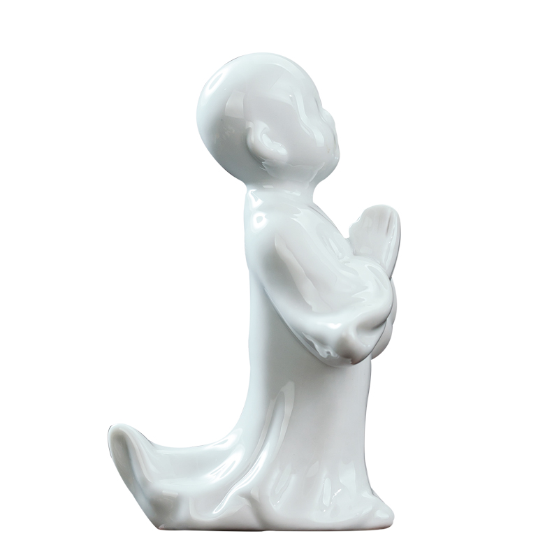 禅意白瓷小和尚家居摆件陶瓷无相佛盆景装饰鱼缸造景客厅桌面茶室