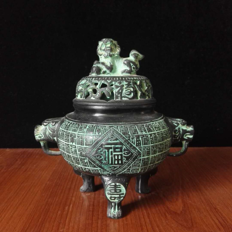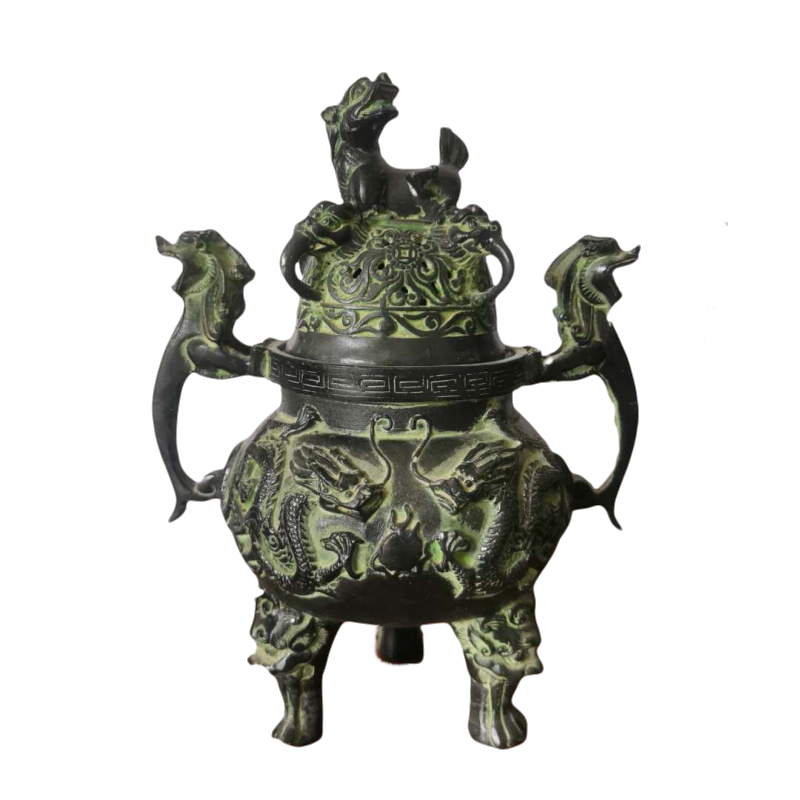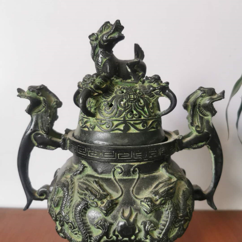 仿古青铜器店铺客厅摆件双龙熏炉复古镇宅古玩包老浆家居装饰礼品