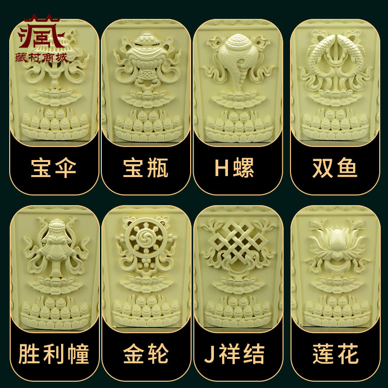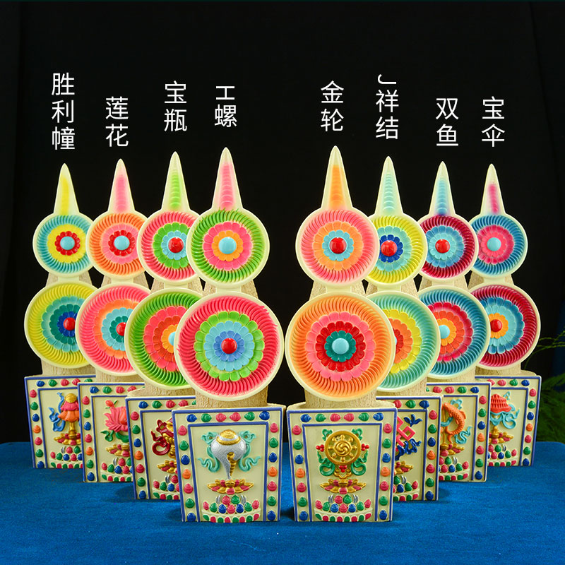 藏村八吉祥雕花朵玛食子室内家用八供吉祥八宝一套摆件