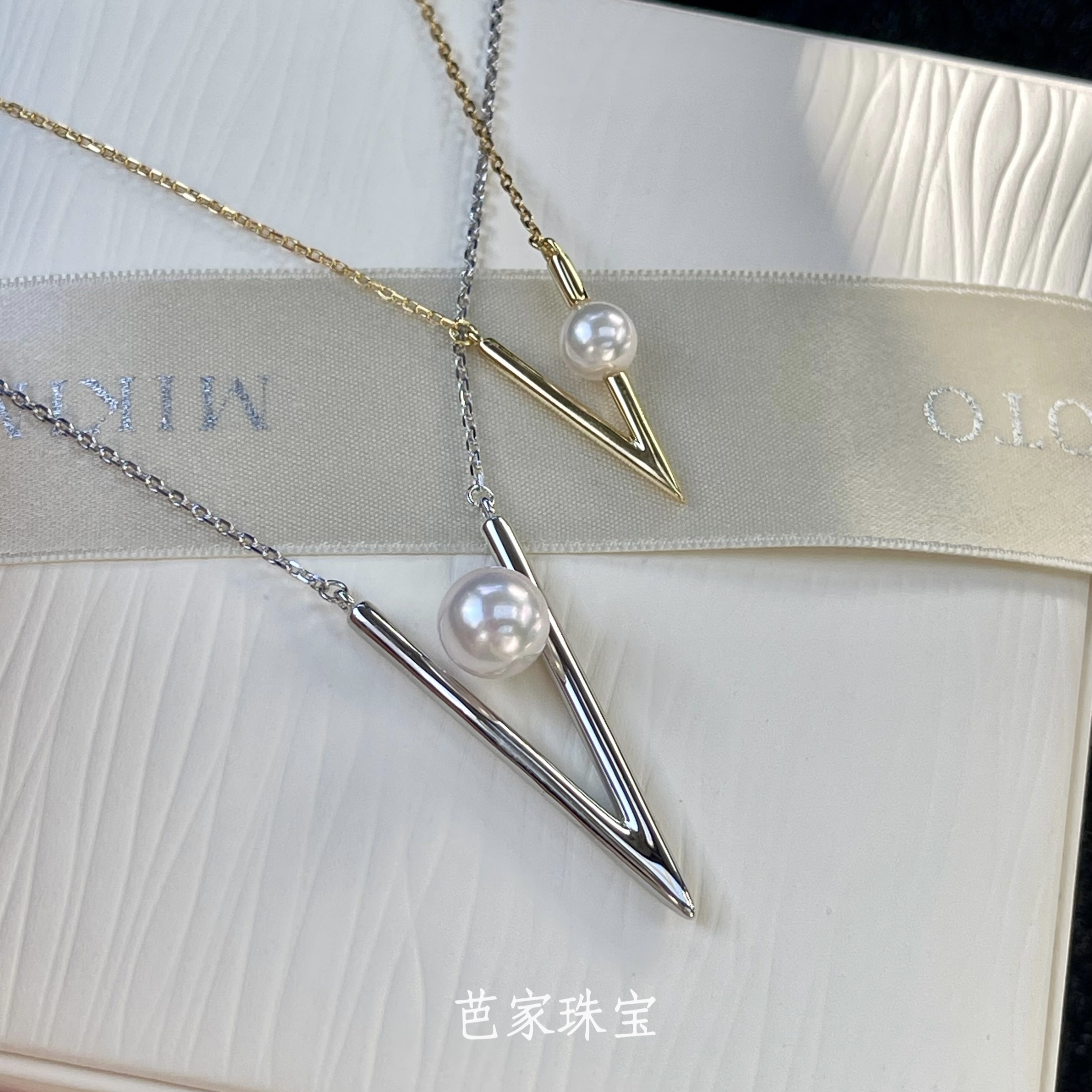 芭家珠宝 M家全新V系列 日本akoya海水珍珠925纯银项链毛衣链