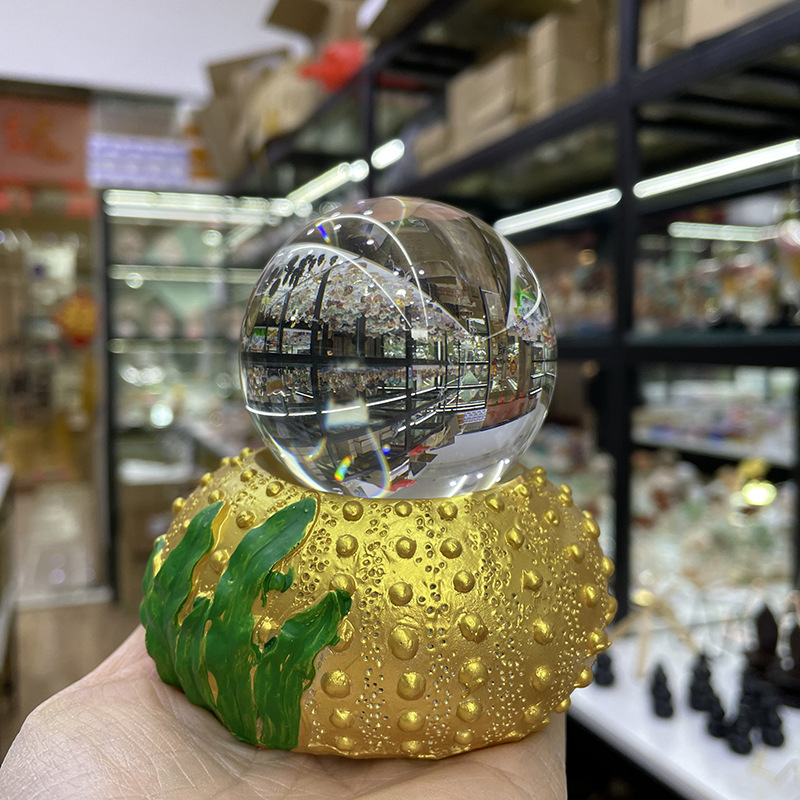 水晶球树脂球座工艺品 摆件球座 海胆岩石摆件 家具办公桌面球座