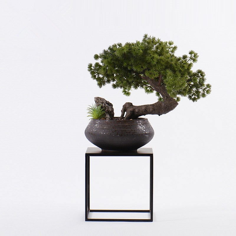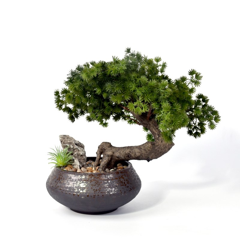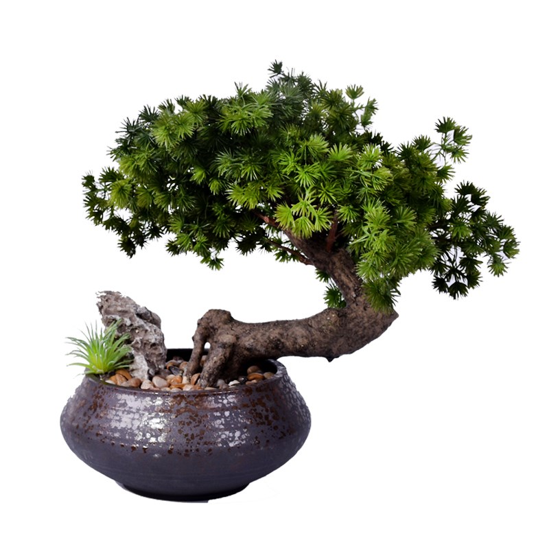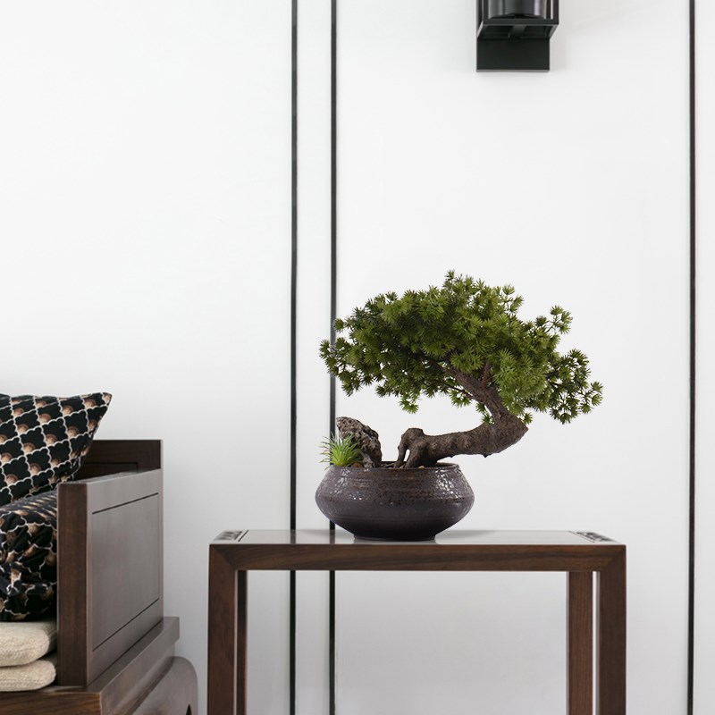 新中式陶瓷盆仿真迎客松装饰摆件现代简约客厅玄R关绿色植物摆设