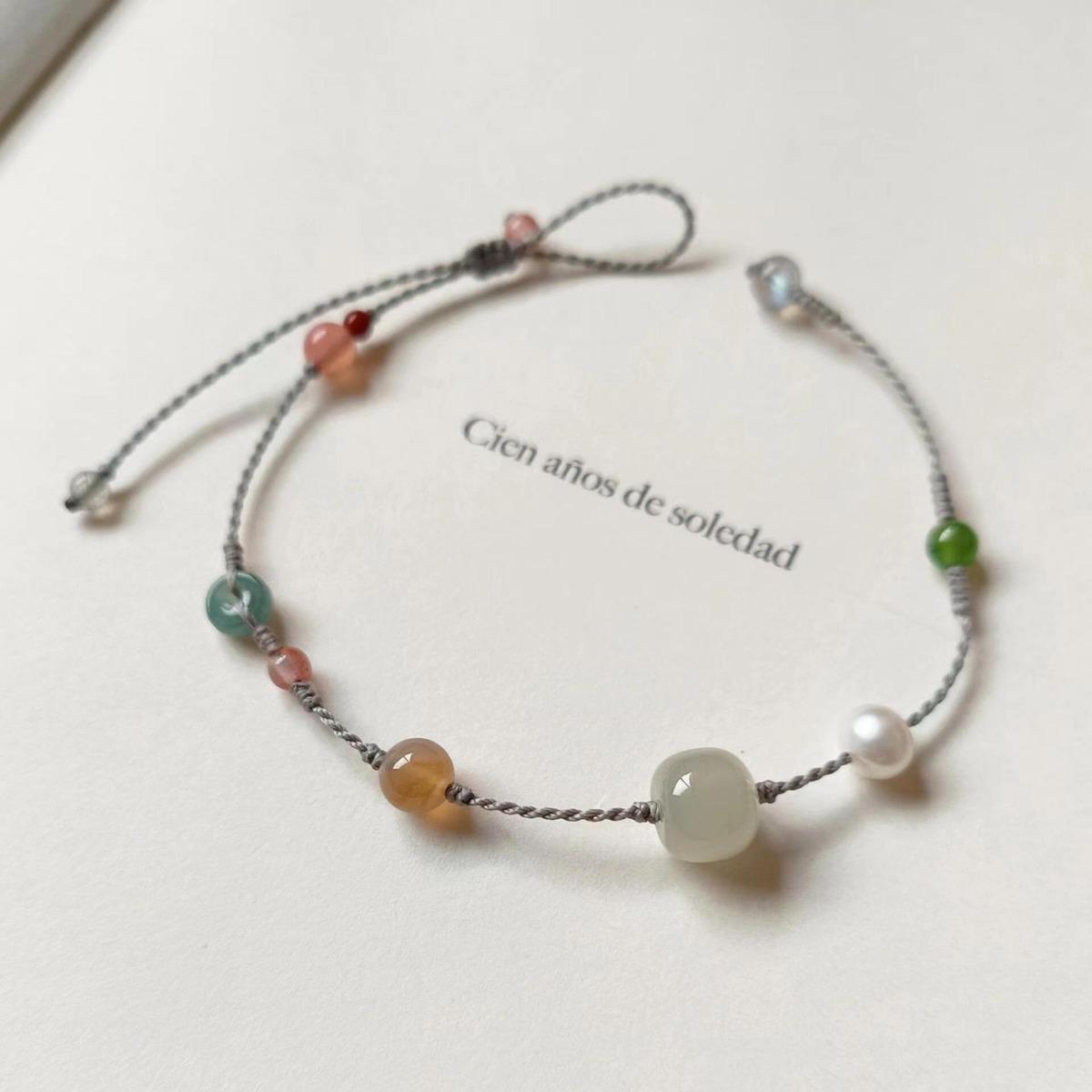 新中式手工编制晴水南红碧玉小多宝手绳夏日女款时尚小清新手串
