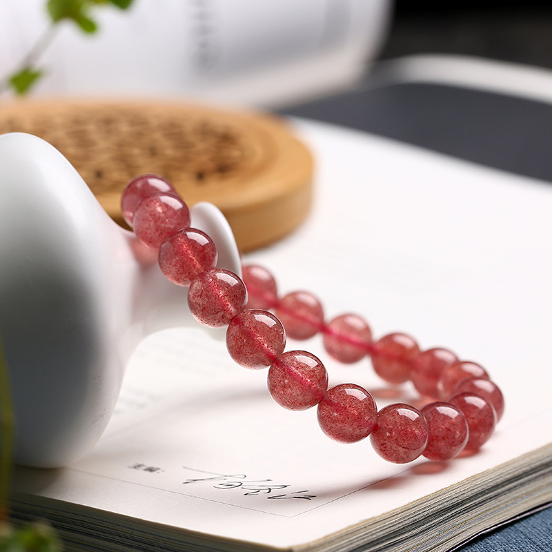手串7A级冰种草莓晶手链 水晶手串 女生桃花运草莓晶DIY圆珠饰品