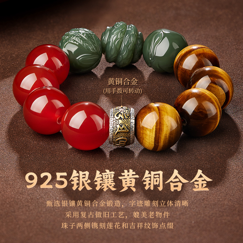 红玛瑙手串男虎眼石和田玉三合生肖转运珠复古文玩佛珠盘玩手链女