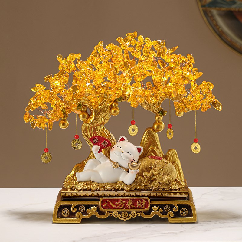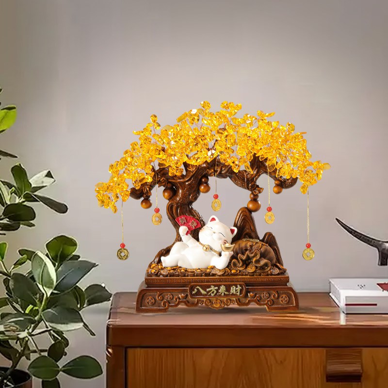 八方来财发财树招财猫摆件客厅店铺收银台装饰工艺品乔迁开业礼物