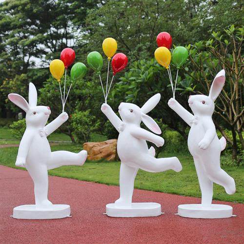 玻璃钢卡通气球兔子雕塑户外园林草坪绿化装饰幼儿园小区公仔摆件