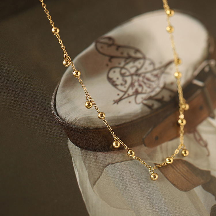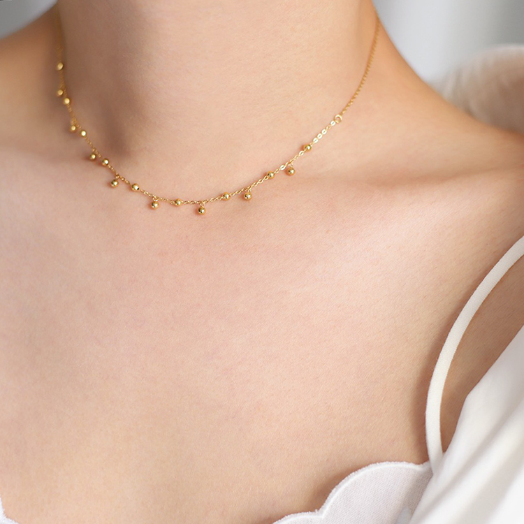 不褪色超仙气质小金豆雨点设计感项链唯美轻奢高级感锁骨链颈链