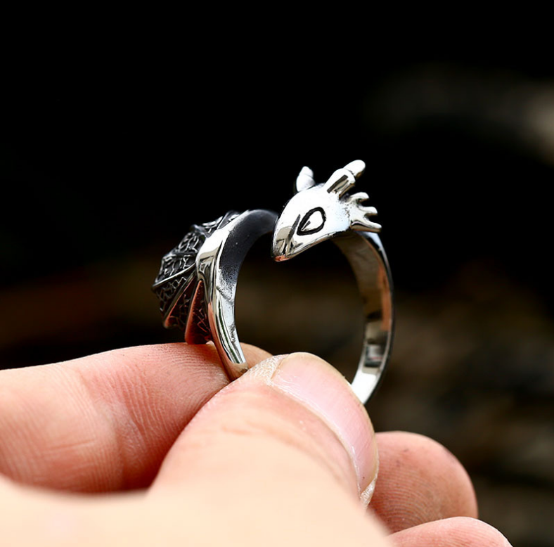 小飞龙个性潮牌钛钢不掉色戒指饰品开口时尚简约朋克风高级感指环