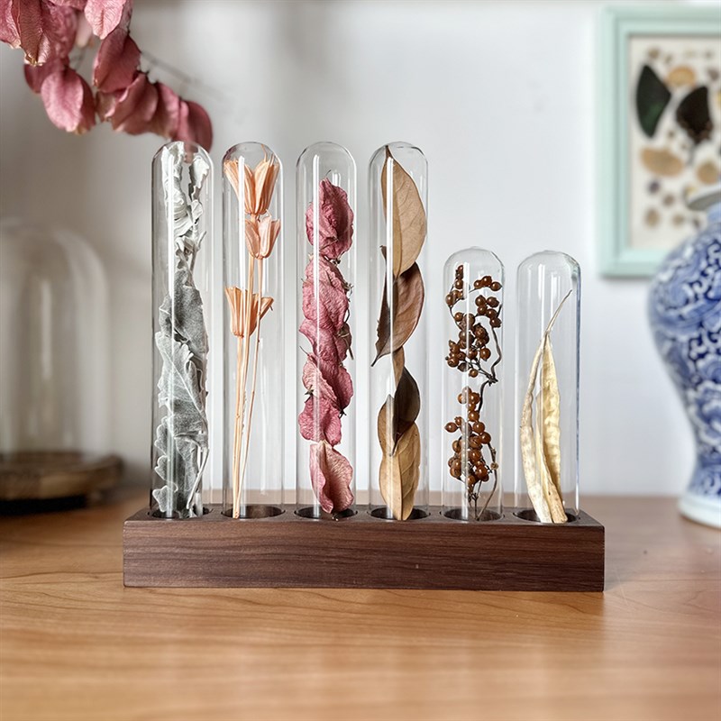 玻璃试管干花植物标本实木底座组合桌面装饰摆件R送闺蜜礼物诧寂