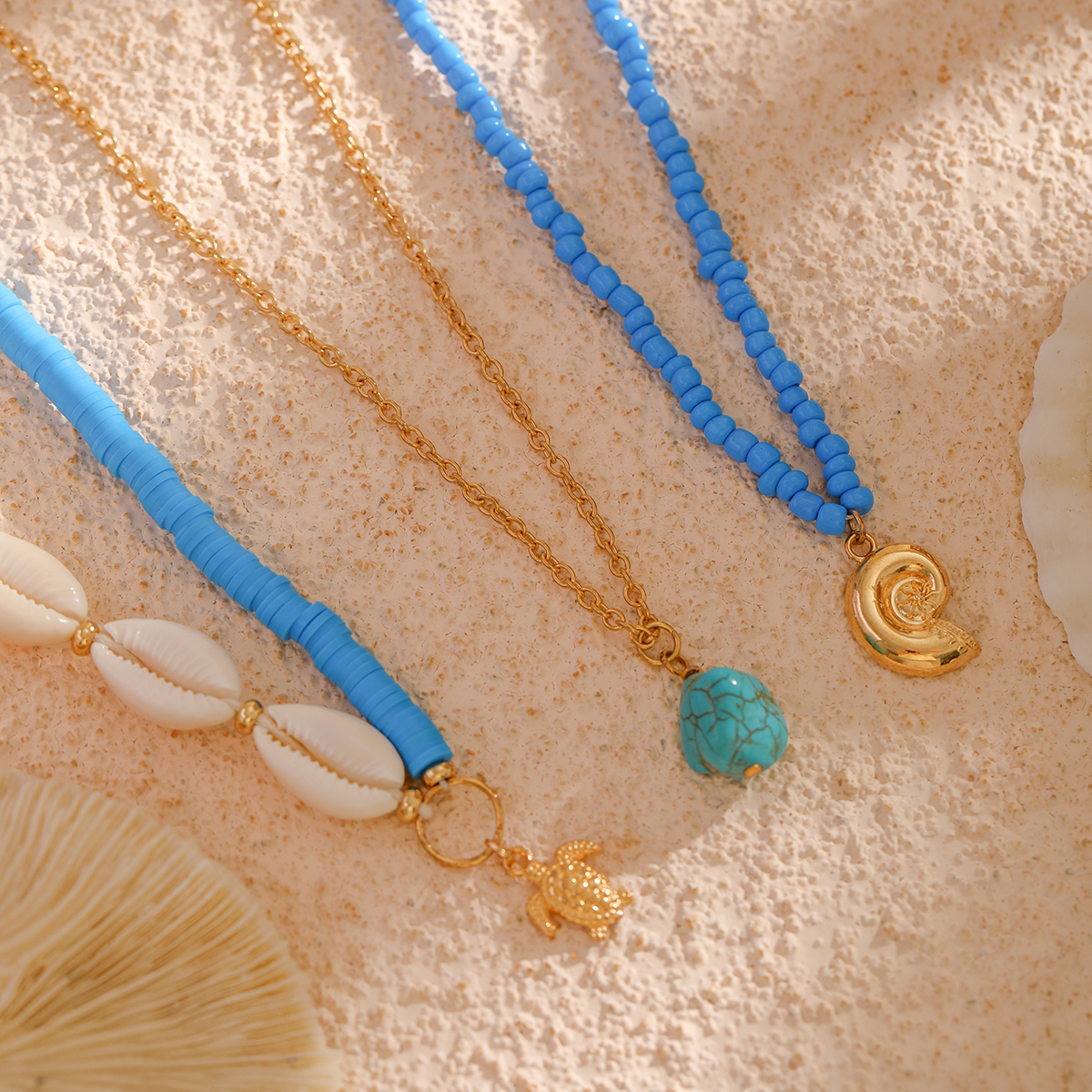 3件套不对称软陶贝壳米珠项链 夏季复古新款小众设计旅拍配饰品潮