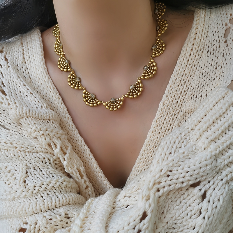 英国LuísaLizz小众设计复古镂空扇形镶钻项链轻奢高级暗金锁骨链