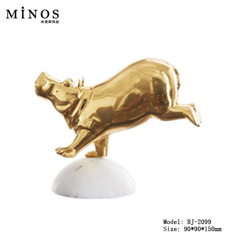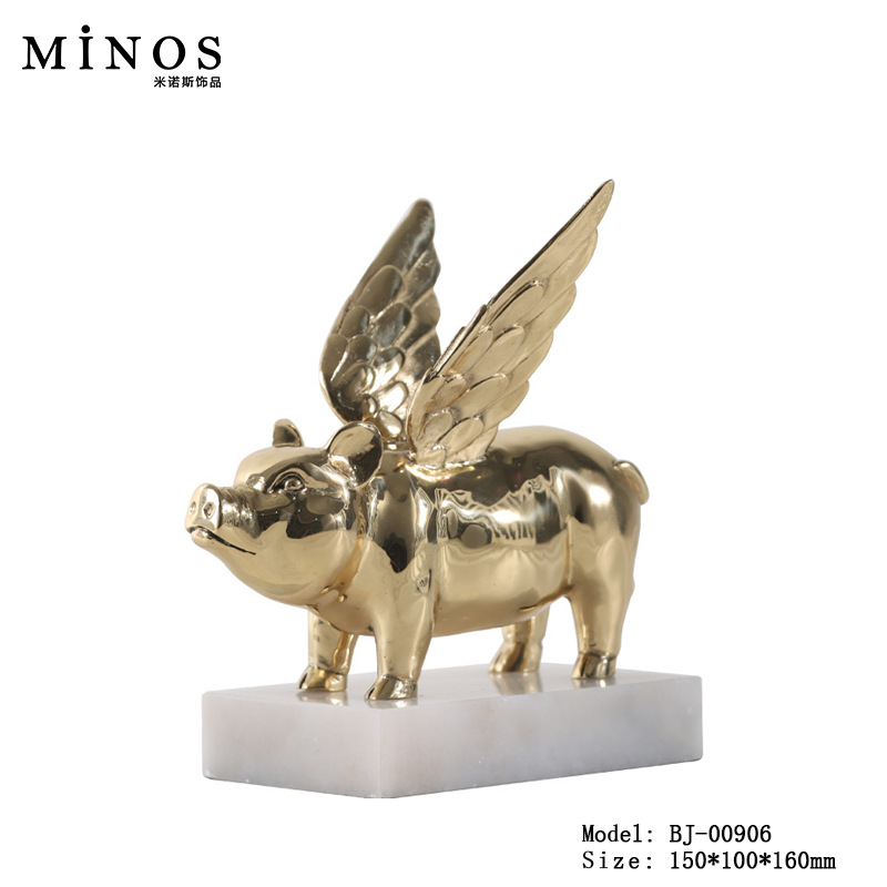 欧美式轻奢玄关电视柜小猪艺术摆件现代简约纯铜黑金猪猪软装饰品