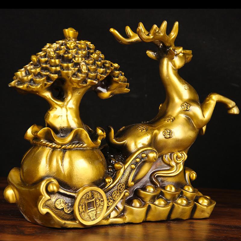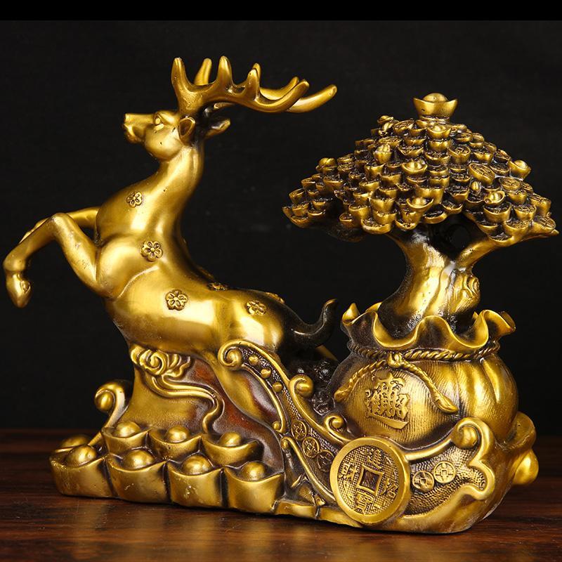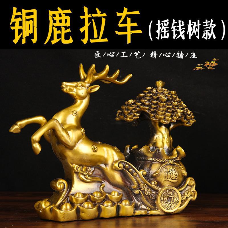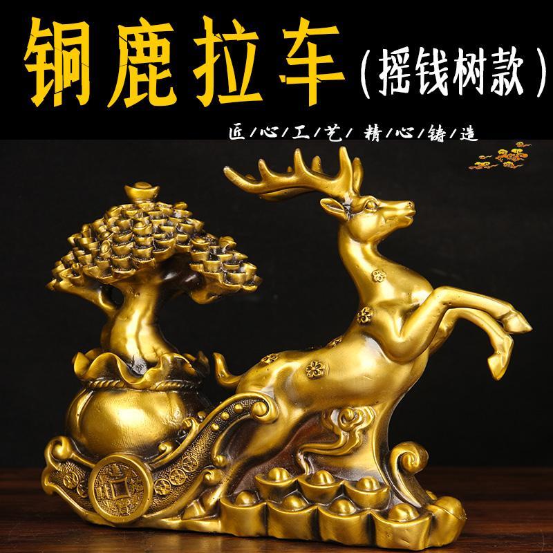 铜梅花鹿摆件 铜鹿摆件 铜鹿拉车摆件 摇钱树款