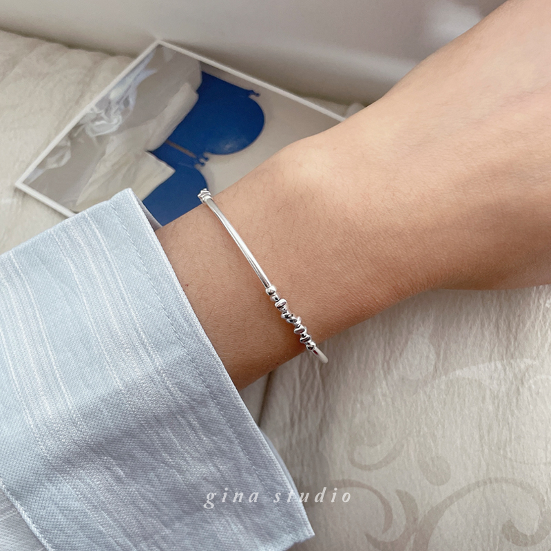 925纯银碎银几两银管手链女极简百搭ins风银饰