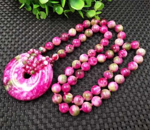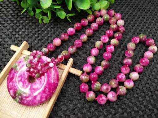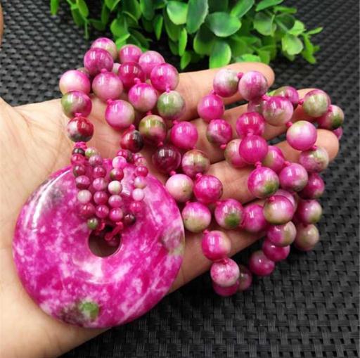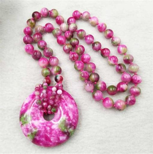 台湾七彩玉桃花天然玉平安扣怀古吊坠项坠项链韩版毛衣链