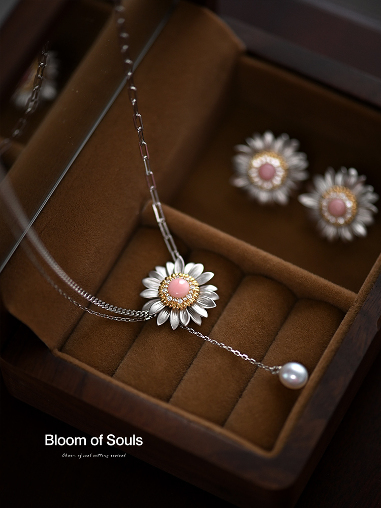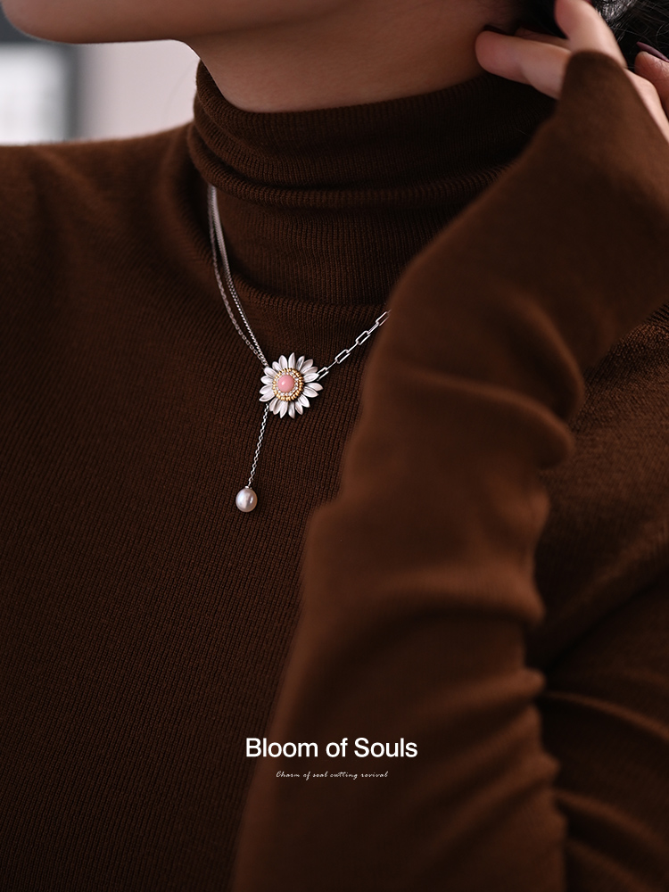 《邂逅夏末》原创设计S925纯银雏菊项链高级感法式复古锁骨链女新