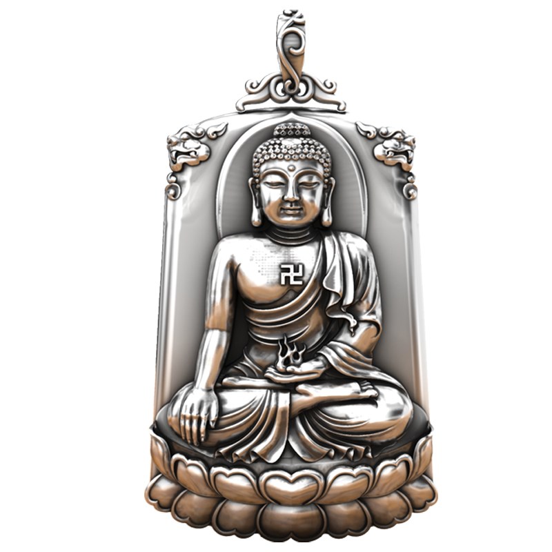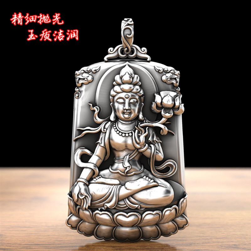 实心99纯银千手观音本命佛吊坠男属鼠生肖属相银牌普贤守护神项链