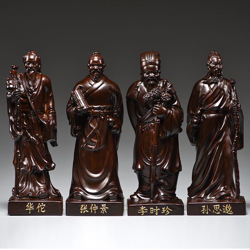 黑檀木雕张仲景人像摆件四大名医中医院药房养生馆红木开业送礼品