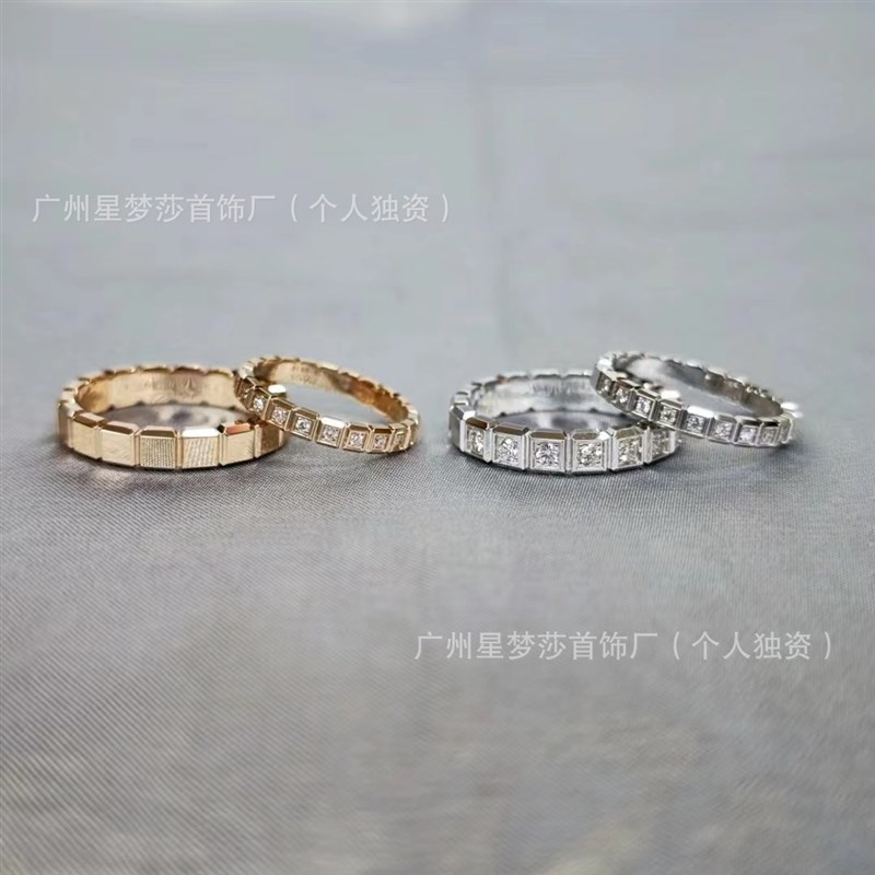 高版本萧家CNC精雕冰块戒指肖邦半钻单钻方形手工镶嵌情侣对戒