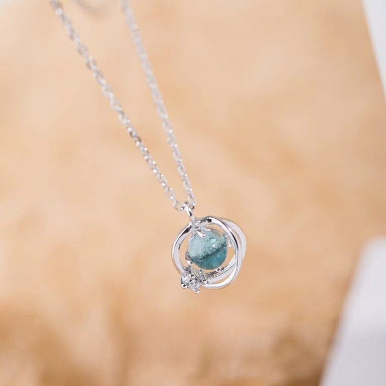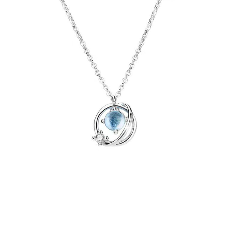 925纯银宇宙星球项链女生日系风简约镶钻蓝色极光吊坠甜美锁骨链